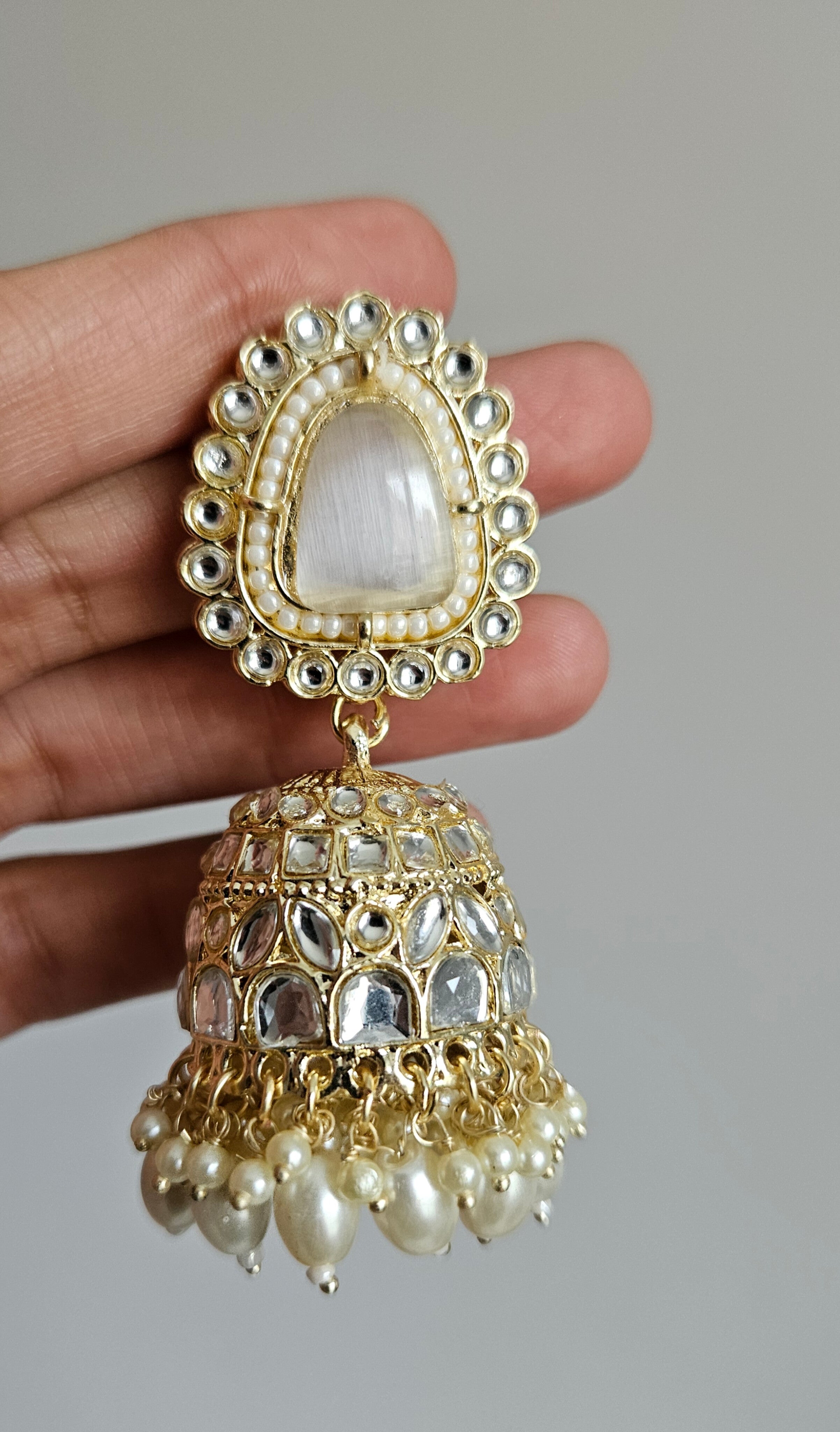 Absolutely Stunning Pearl kundan jhumka earrings studded with kundan stones, pearls and beads
