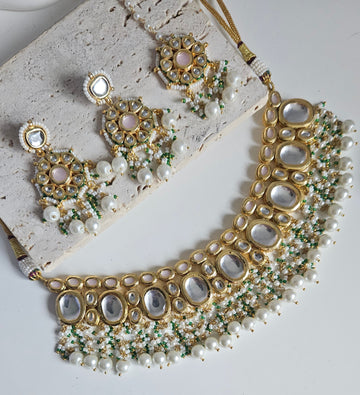 Gold plated sheesha kundan Necklace set studded with Meena Kundan stones.