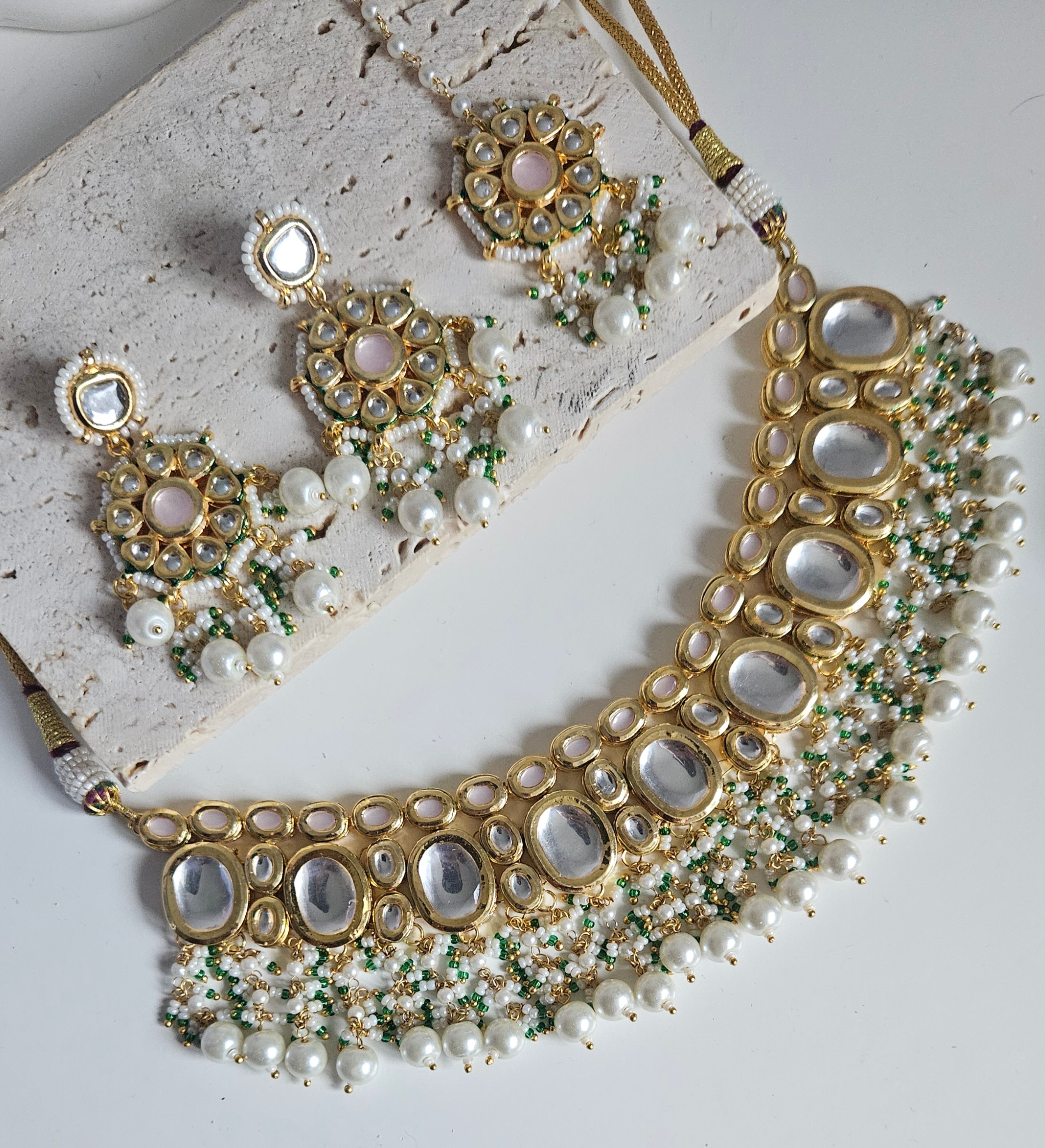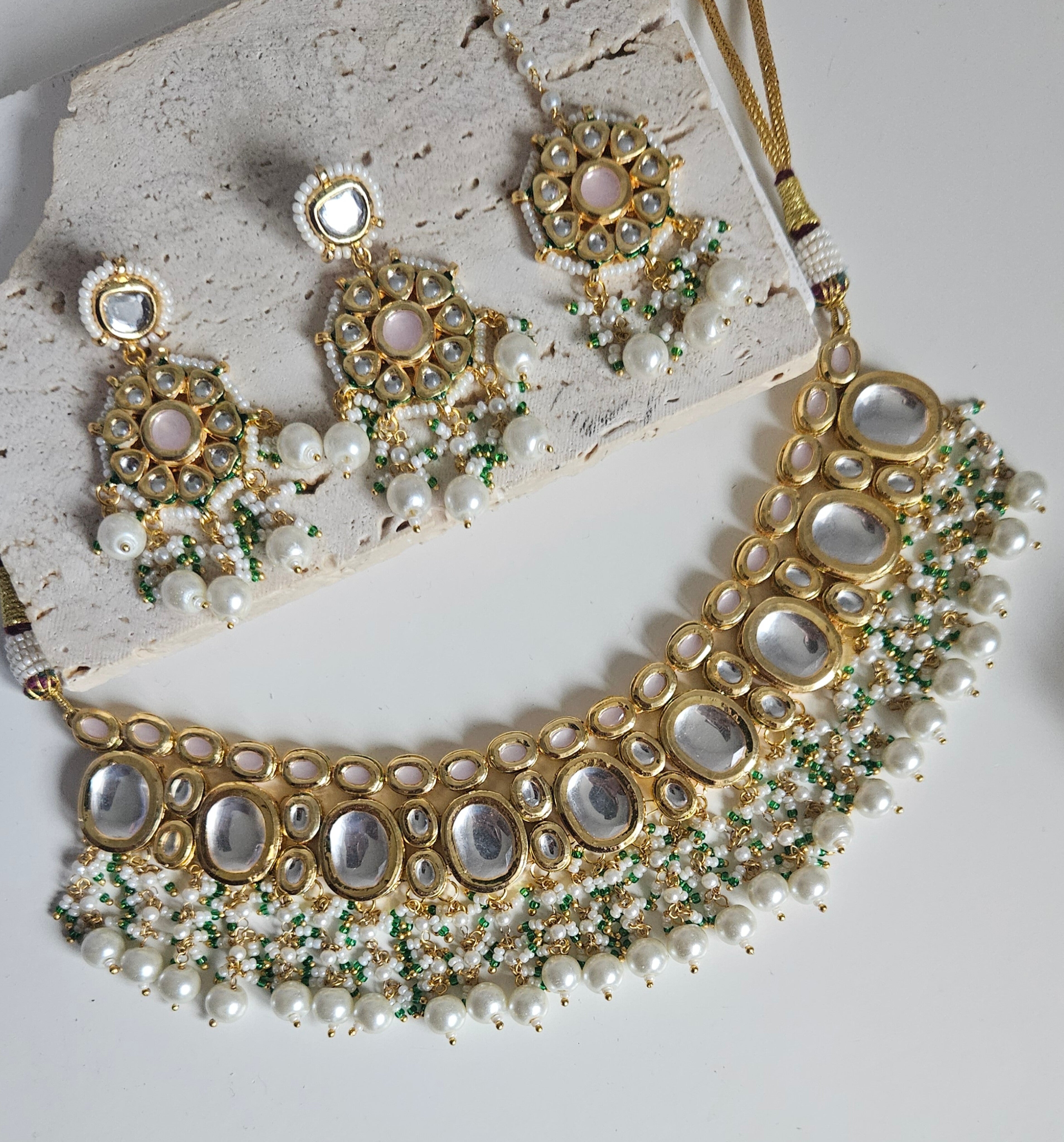 Included: Necklace, Earrings and tikka