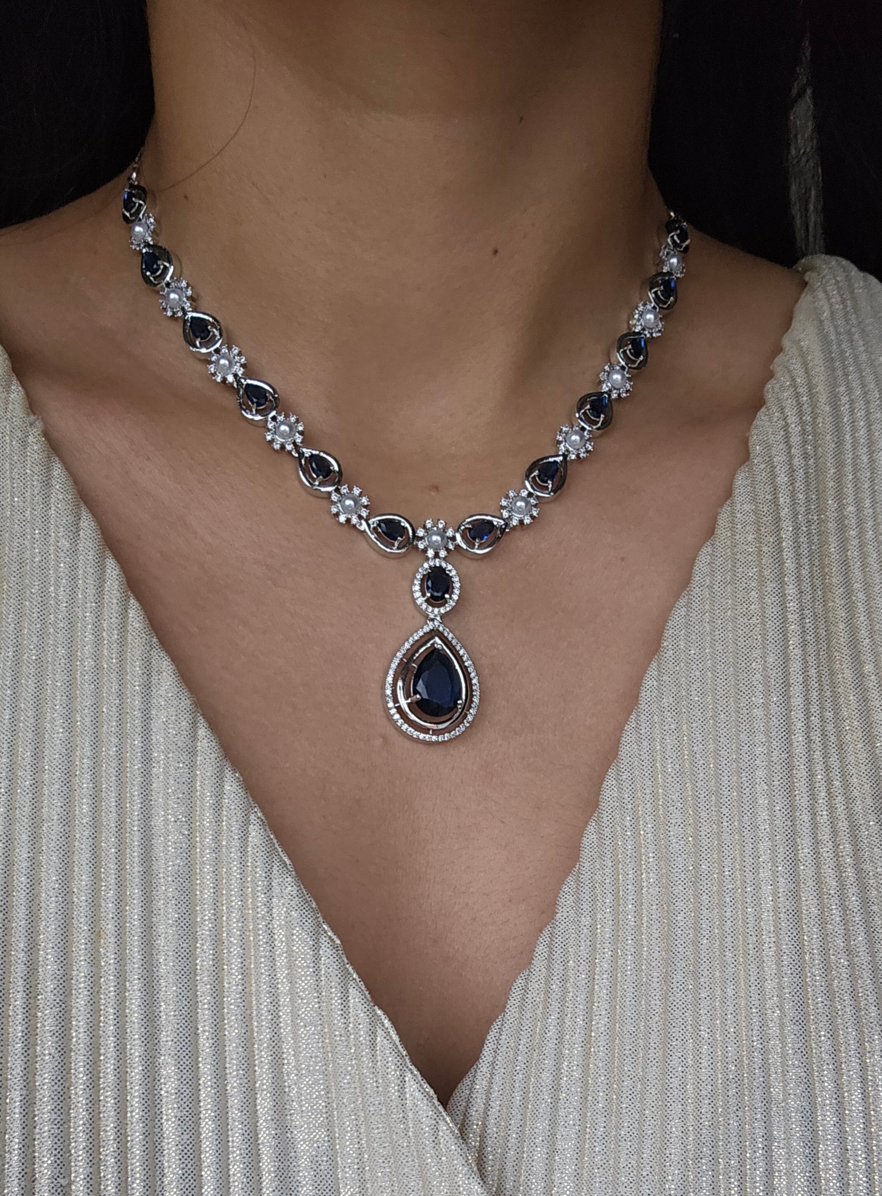 Add Some Glamour to your style with this Dazzling Exclusive American Diamond Choker Set from WARAICH Jewels.
