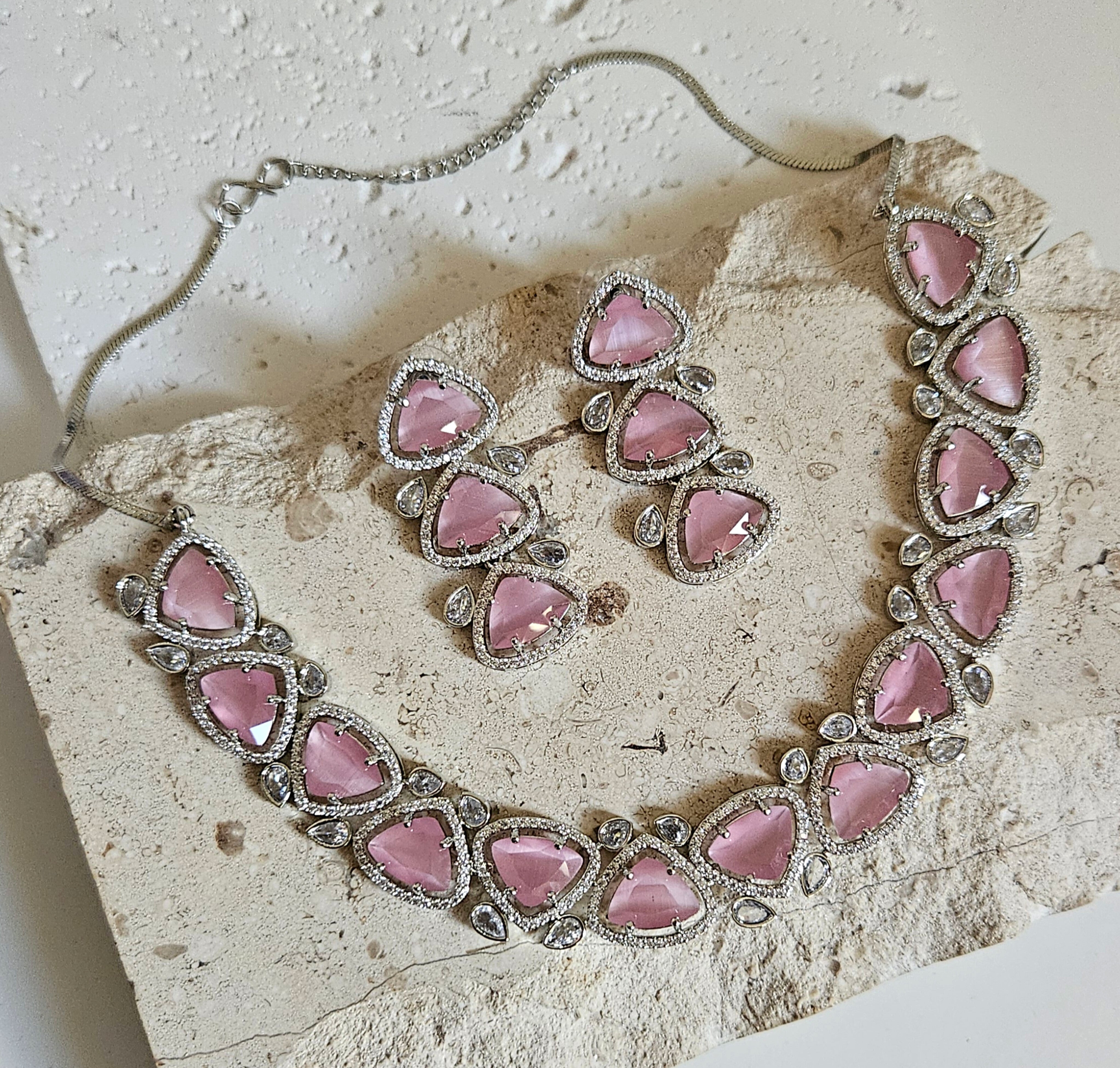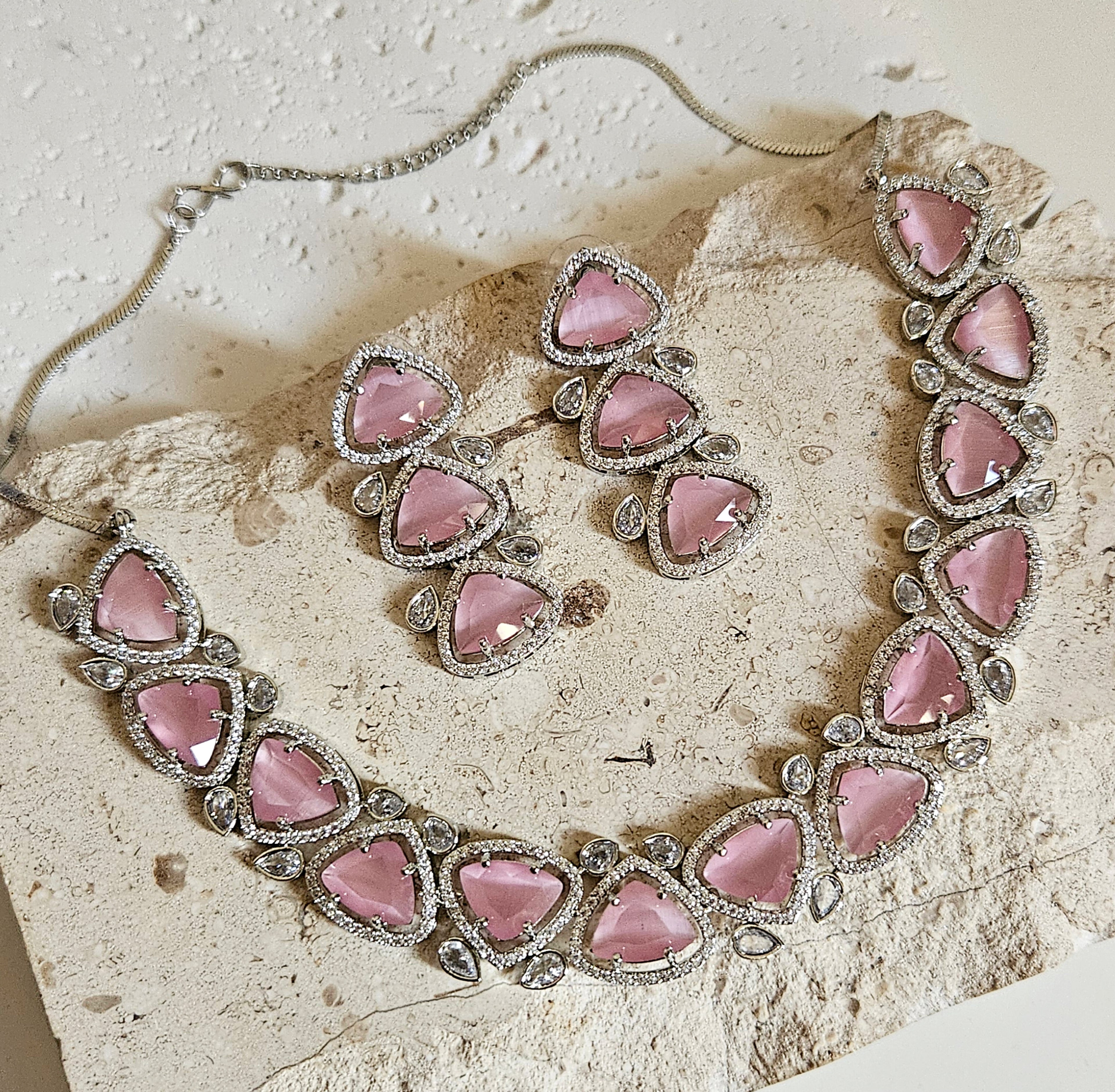 Add Some Glamour to your style with this Dazzling Exclusive American Diamond Necklace Set from WARAICH Jewels.