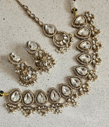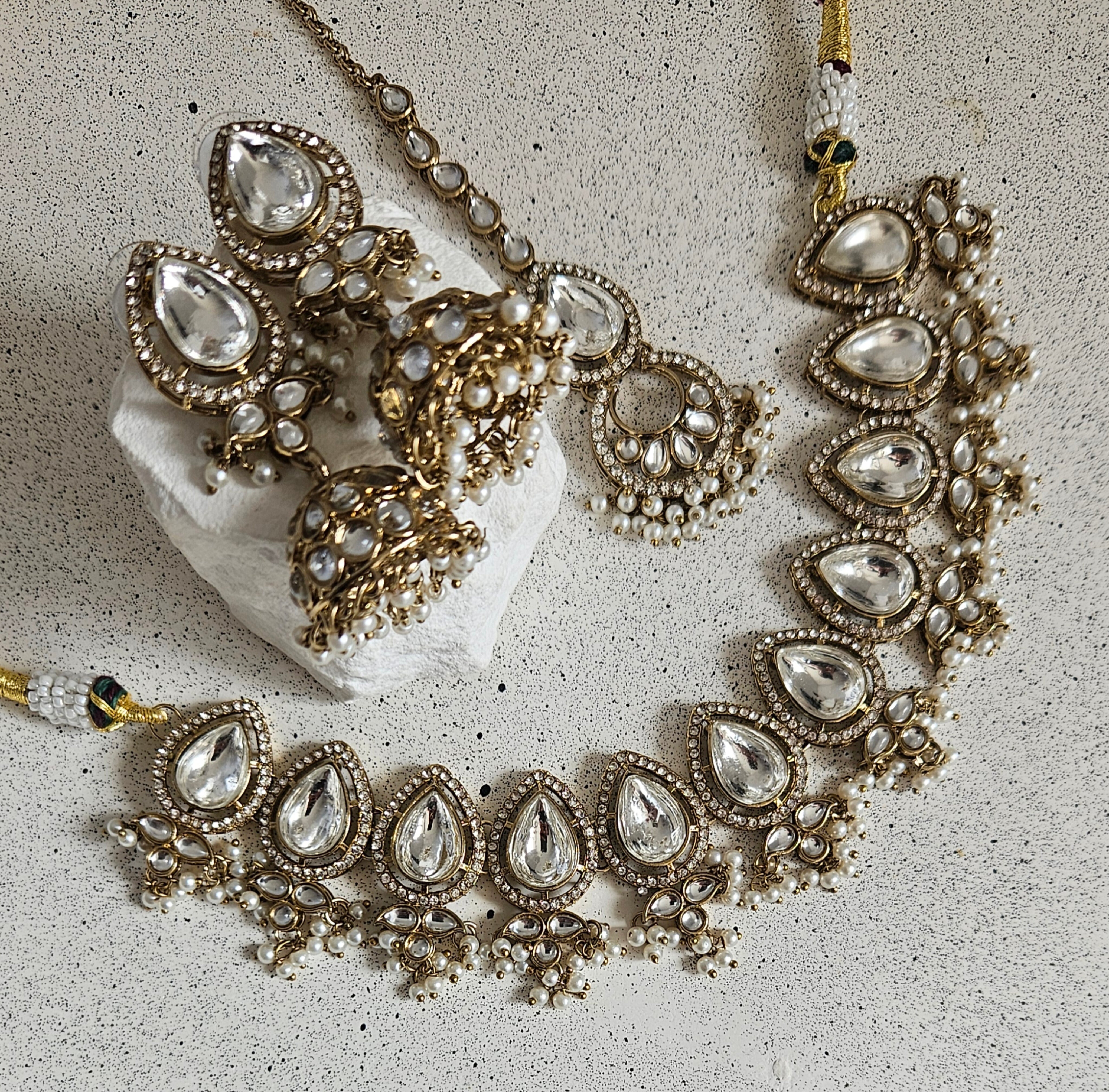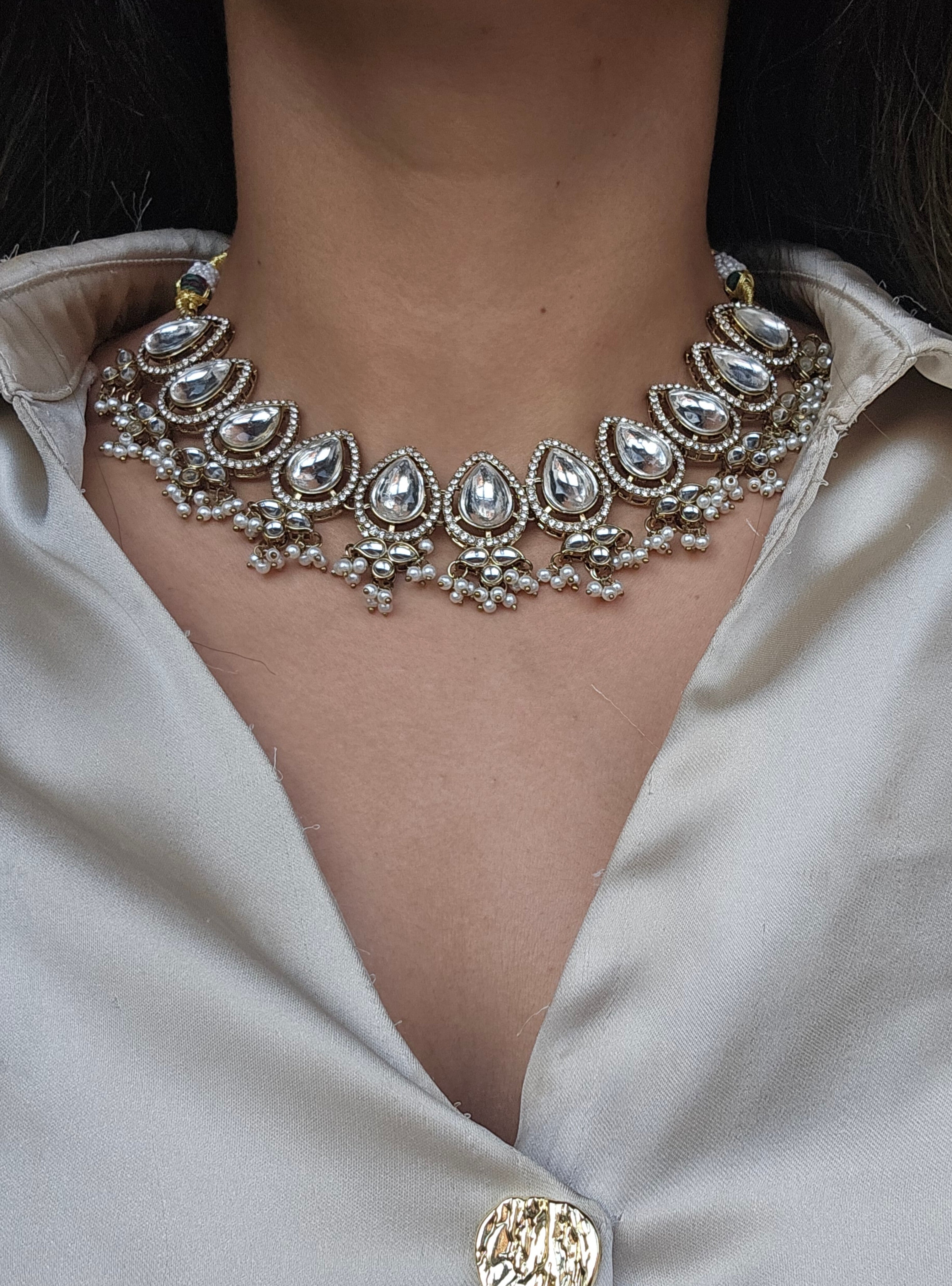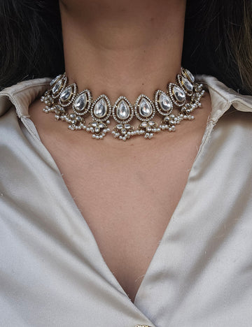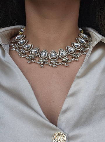 • Gold and Silver Tone Luxury Sift Choker set Studded With Kundan Stones and silver stones