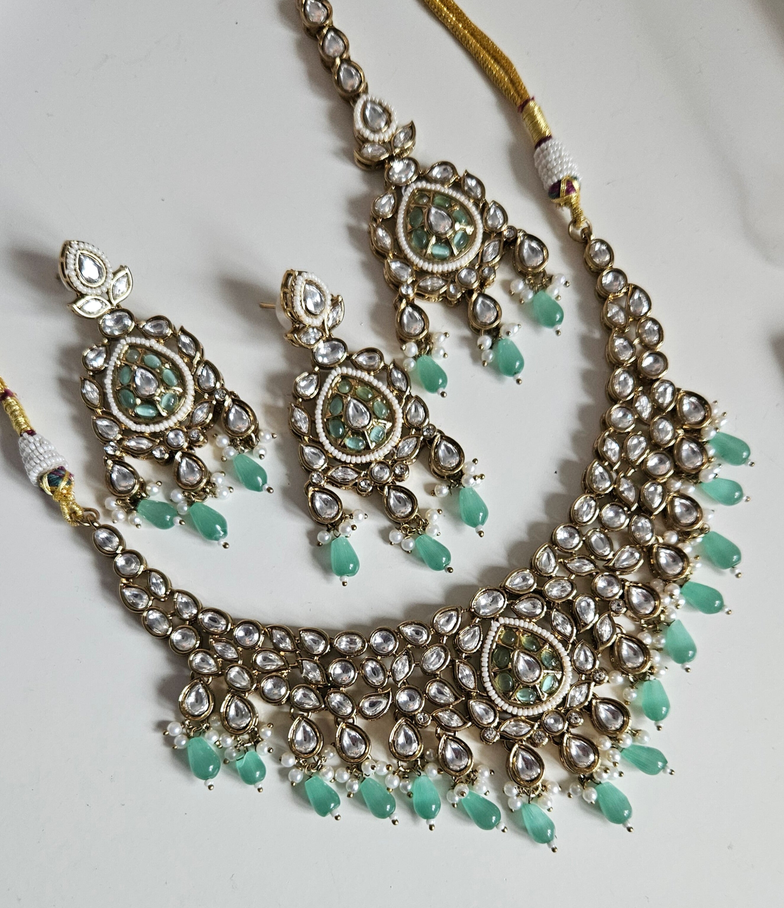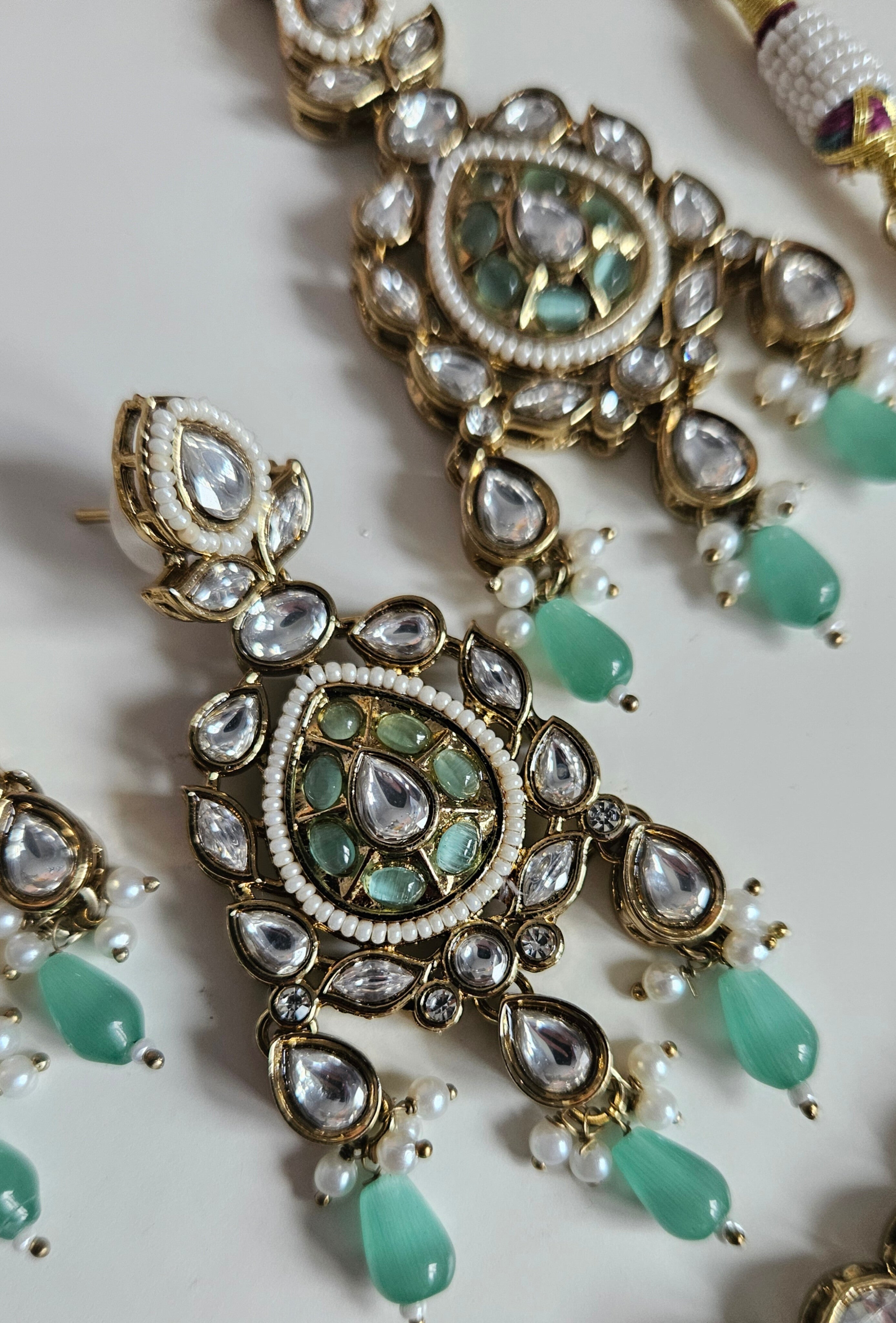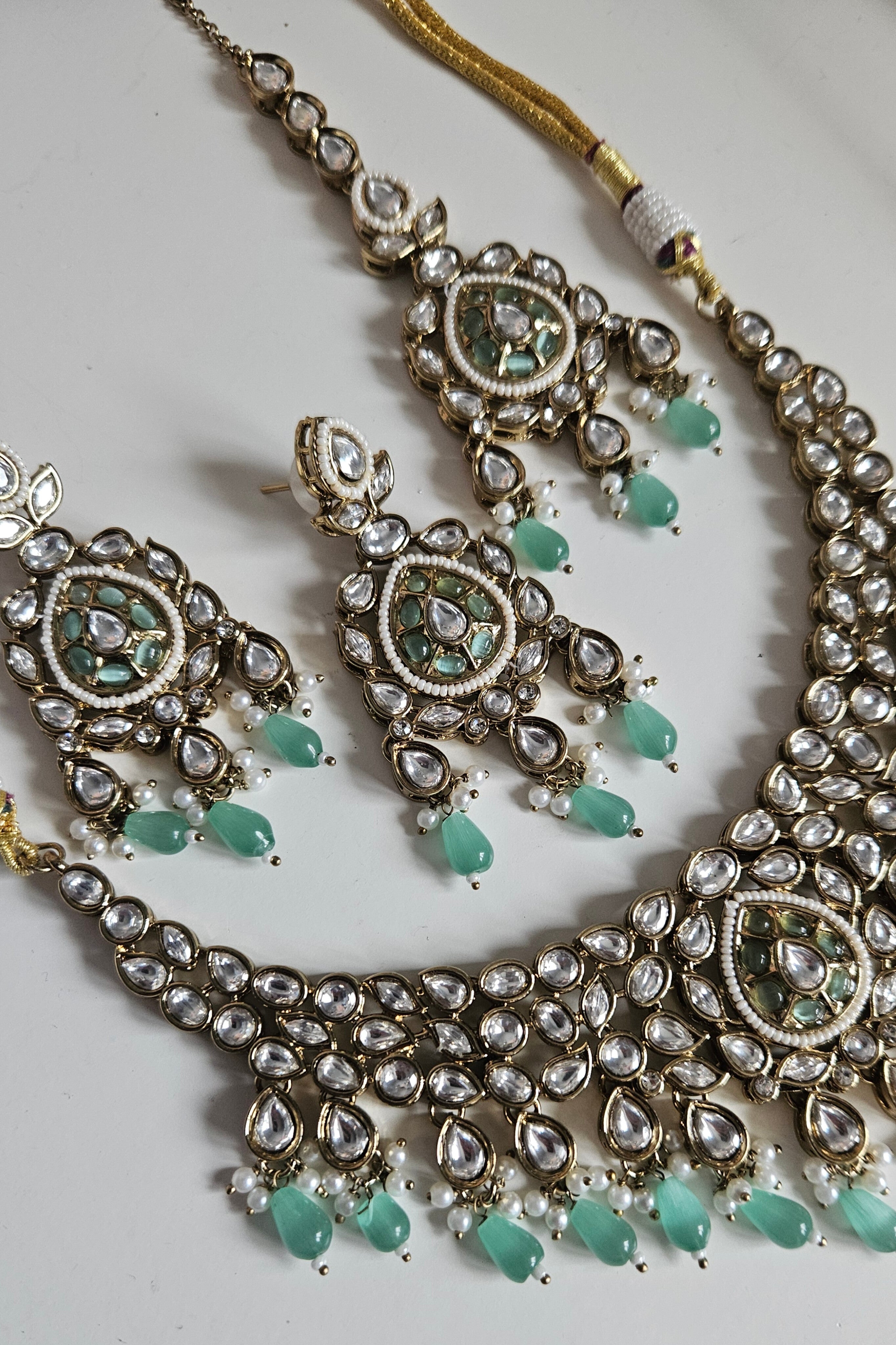 A stunning gold tone necklace set beautifully studded with Kundan stones, designed to elevate any traditional or modern look.