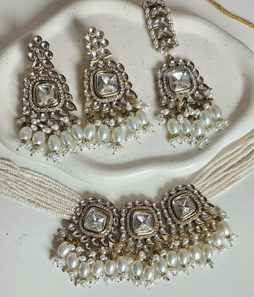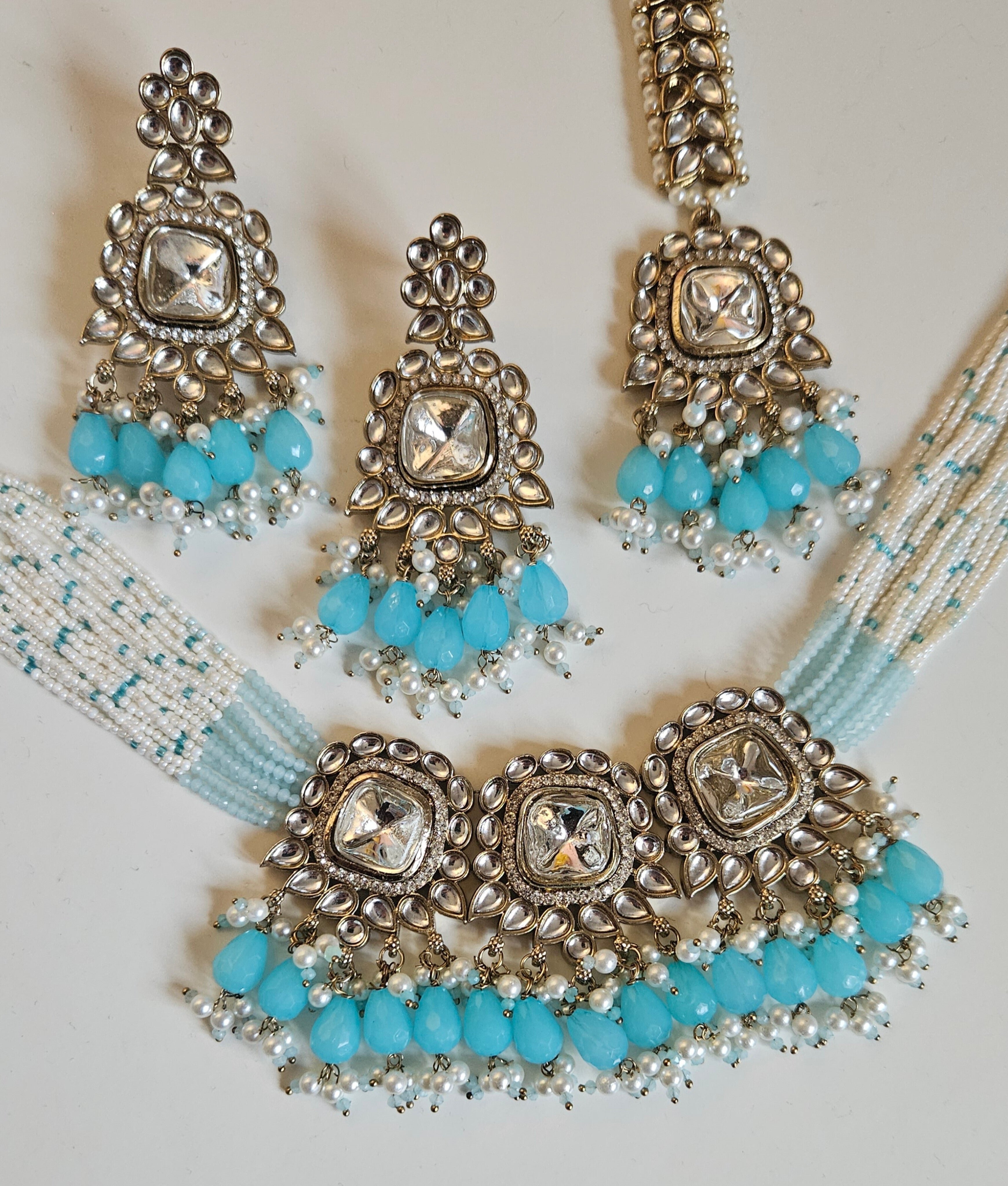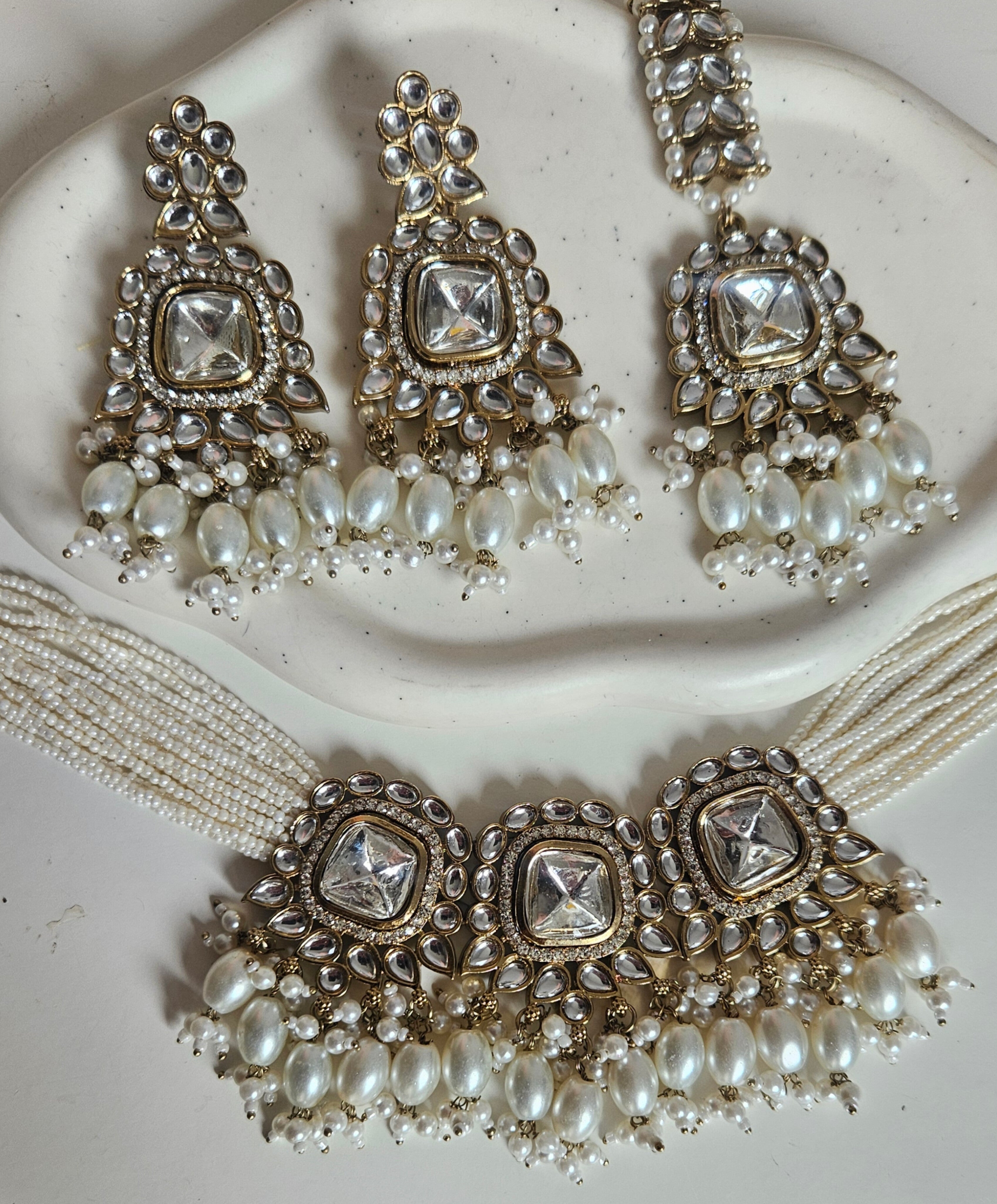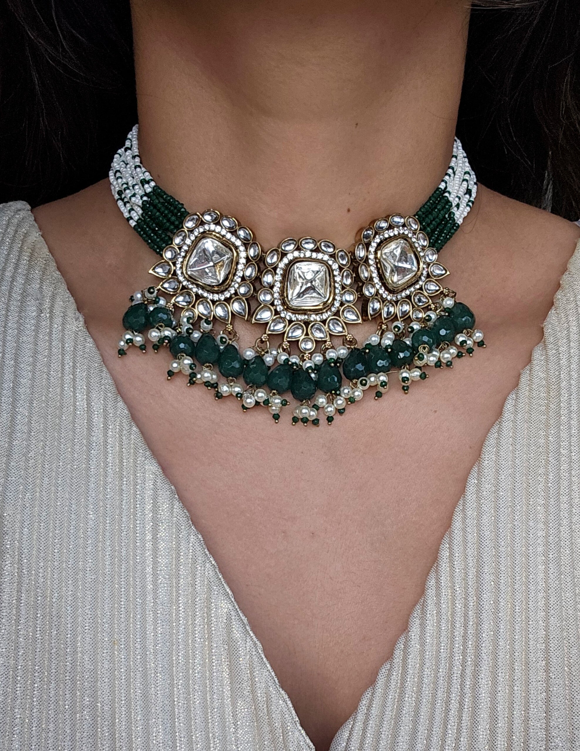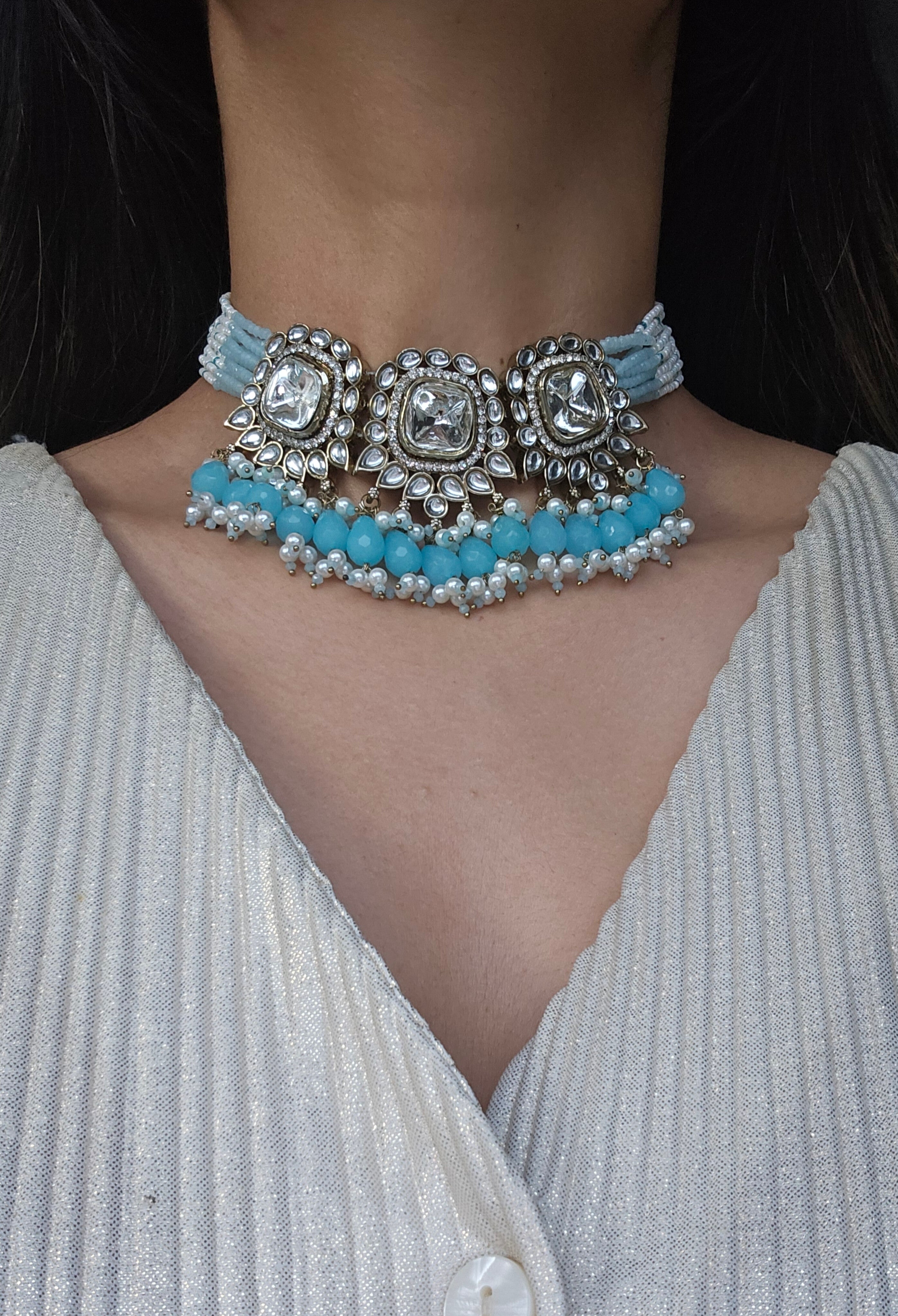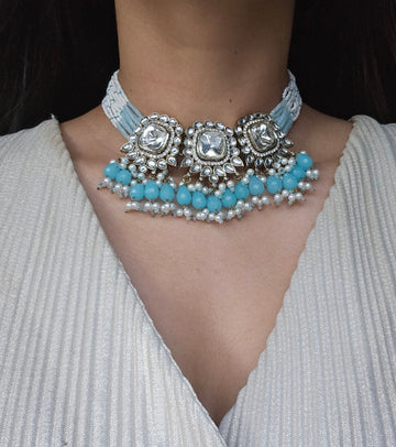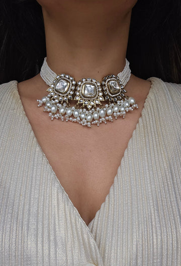 • Gold and Silver Tone Luxury KATRINA Choker set Studded With Tyaani Kundan Stones and kundan stones