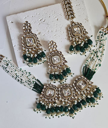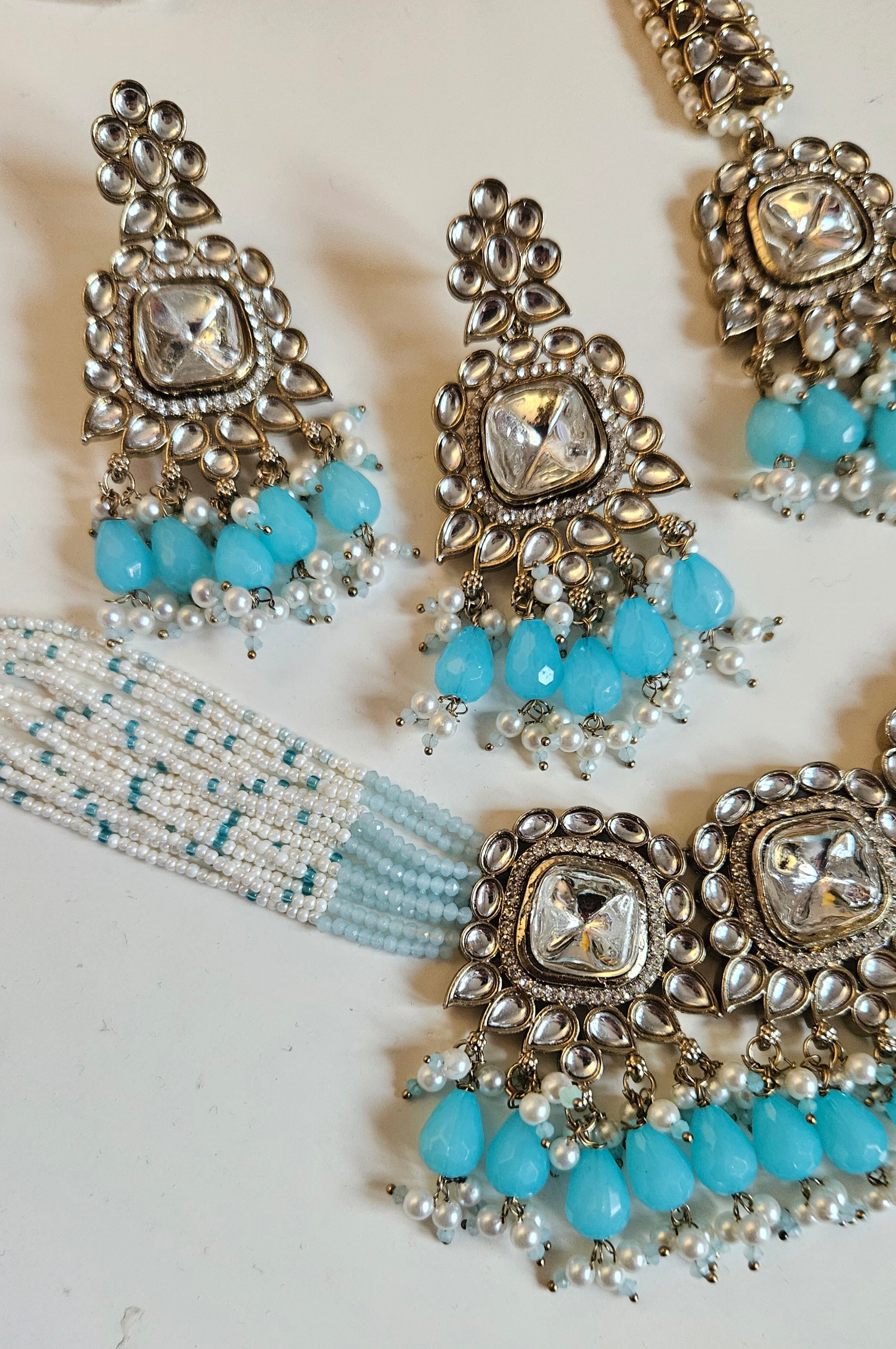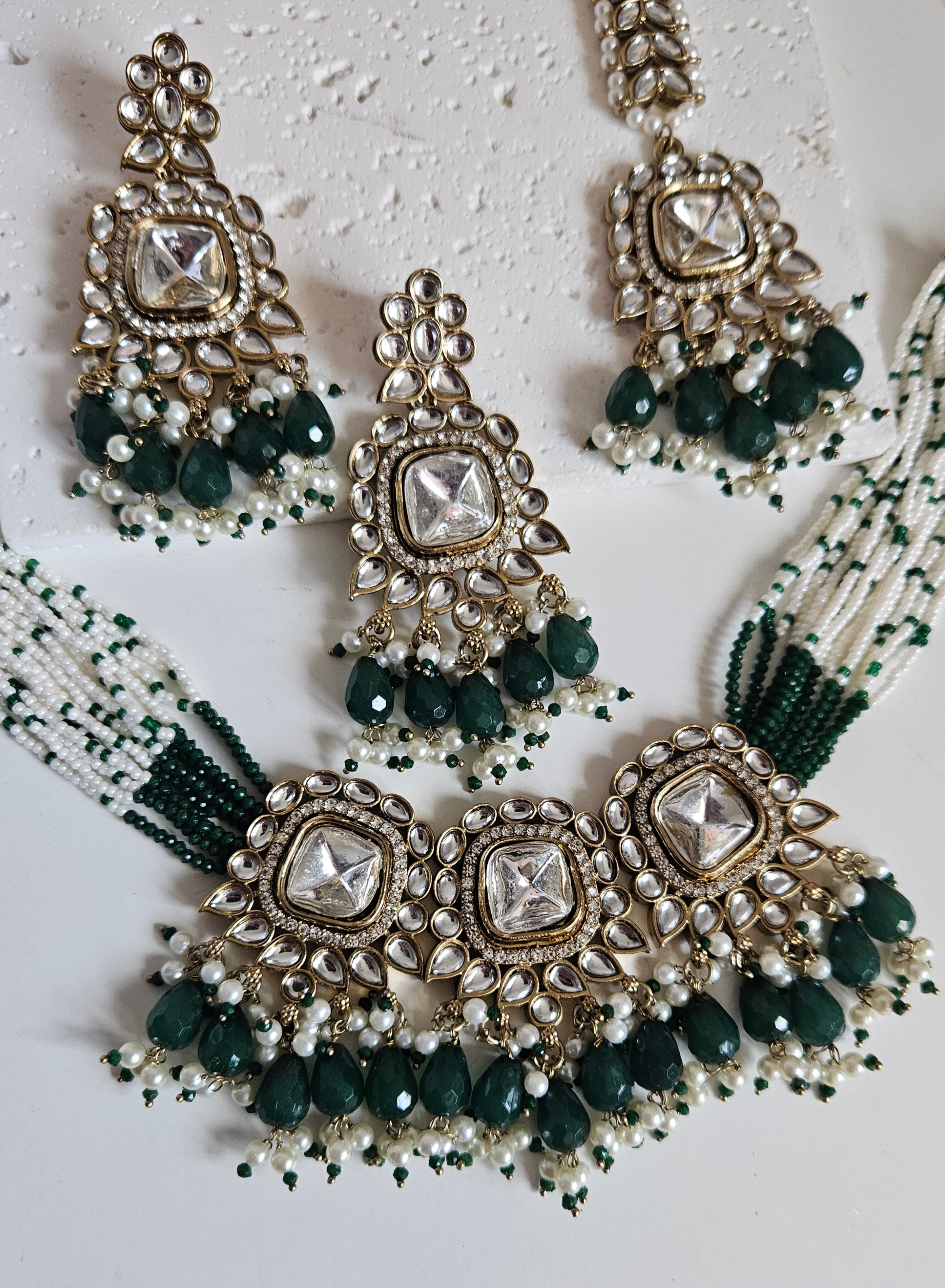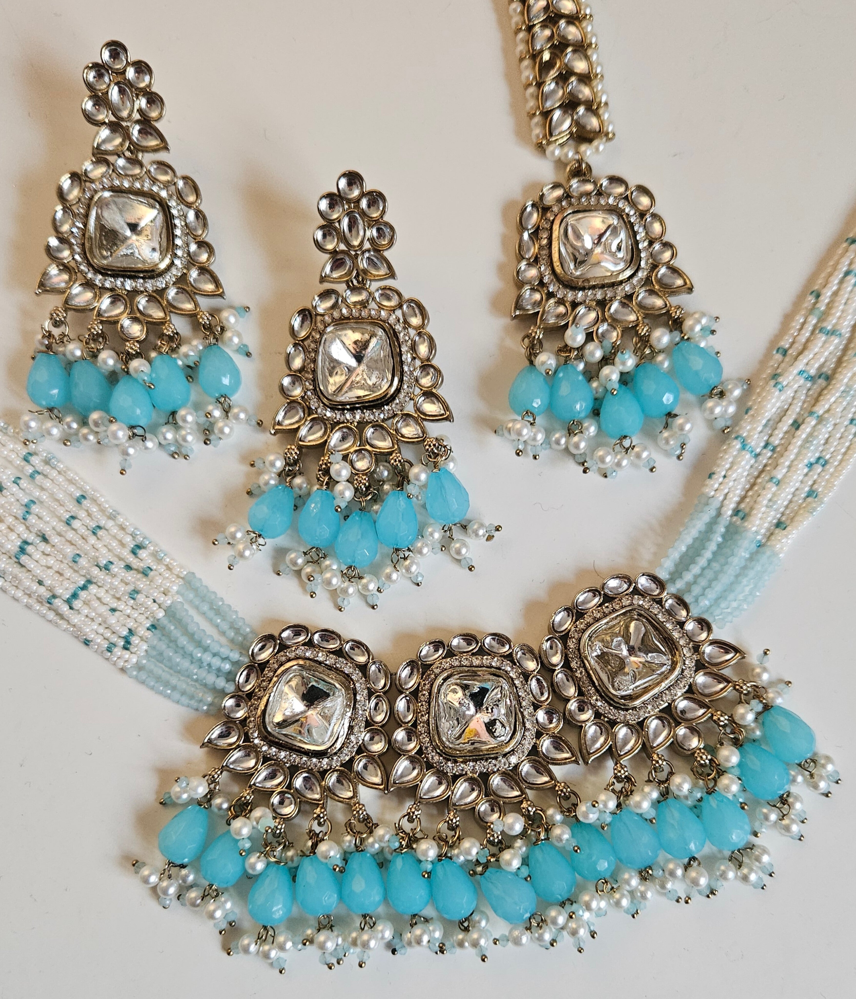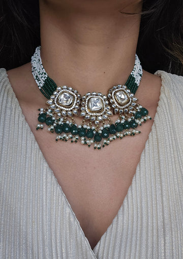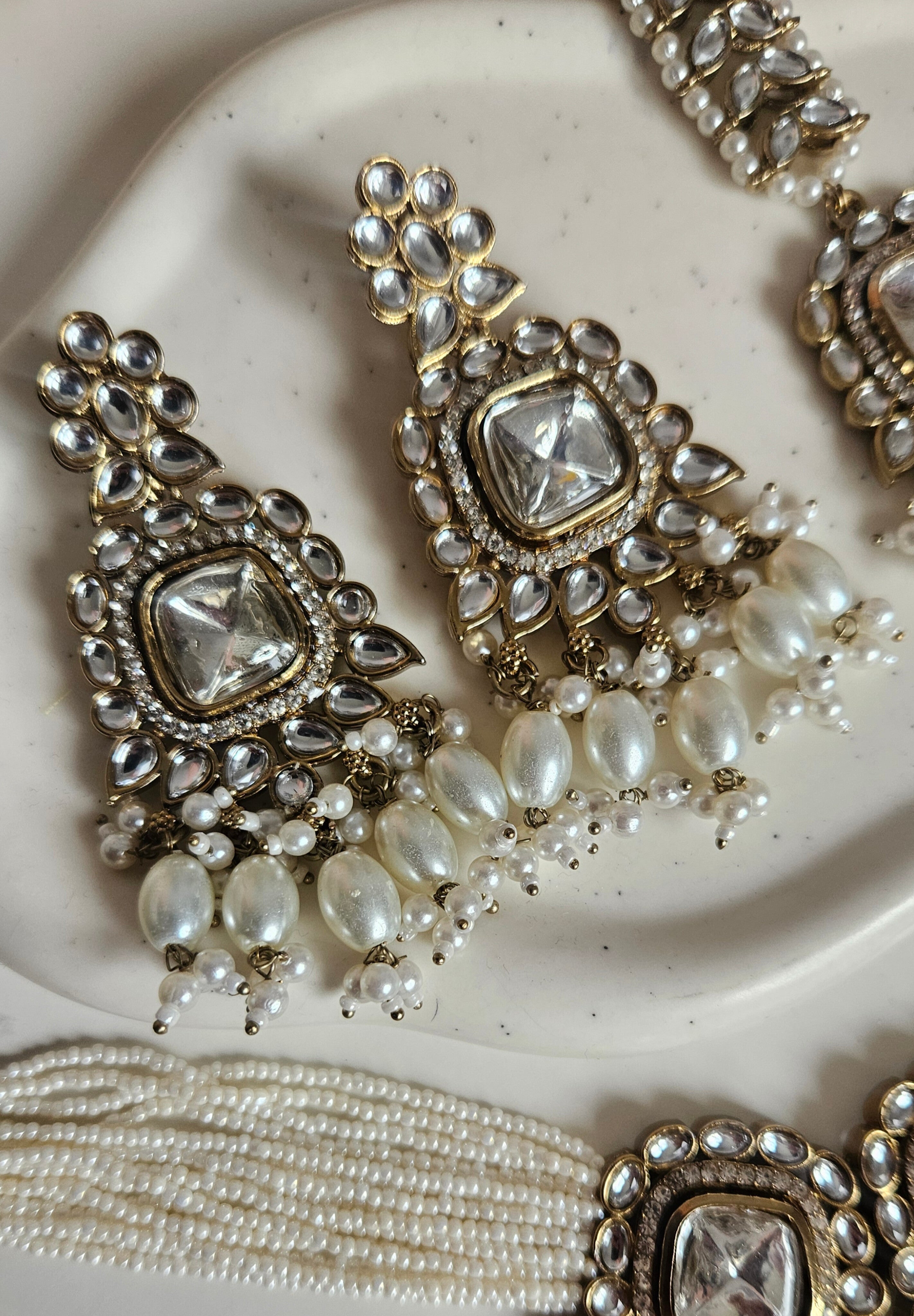 • Gold and Silver Tone Luxury KATRINA Choker set Studded With Tyaani Kundan Stones and kundan stones