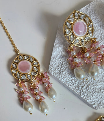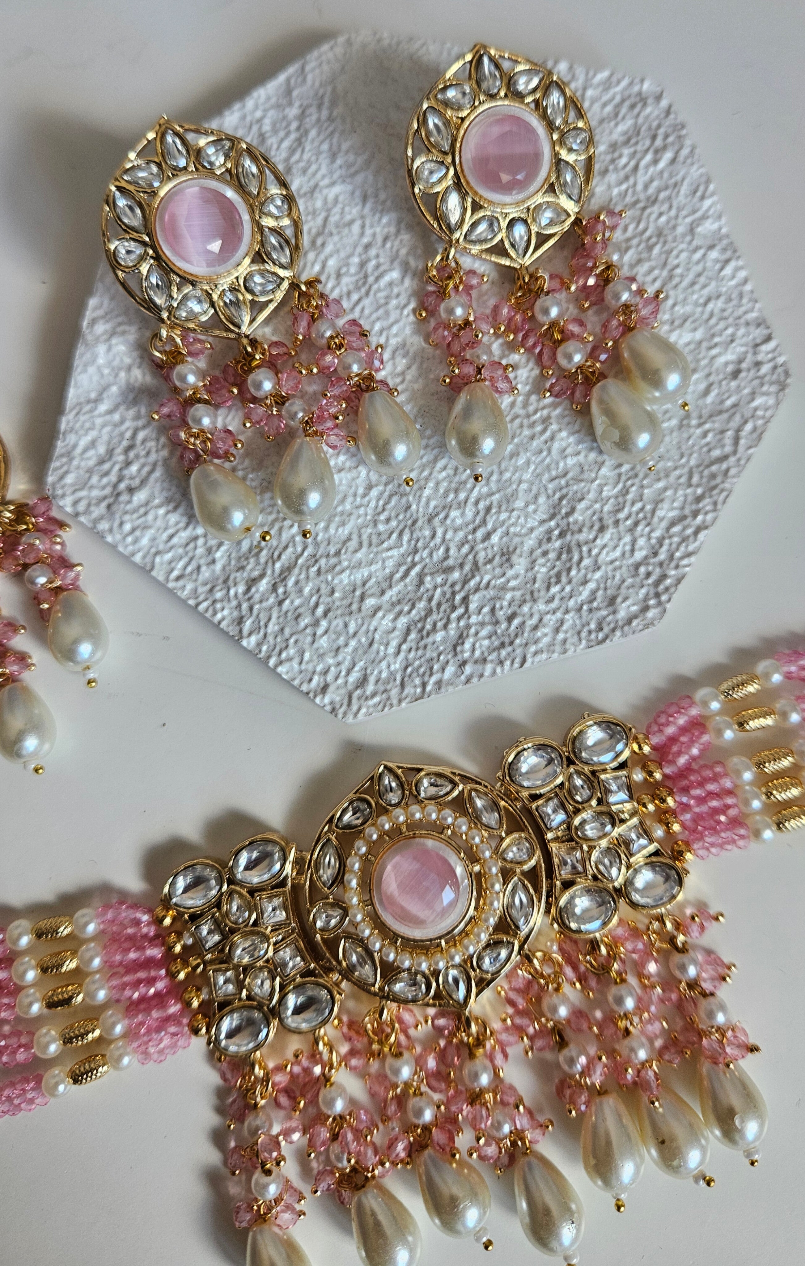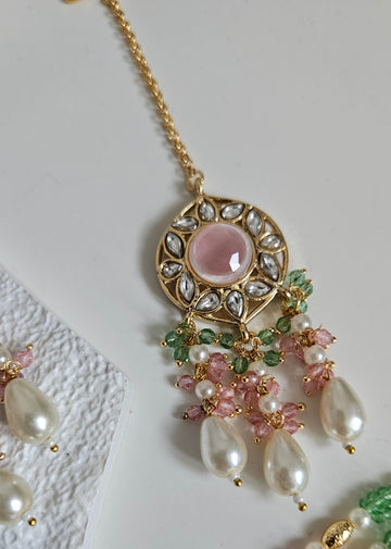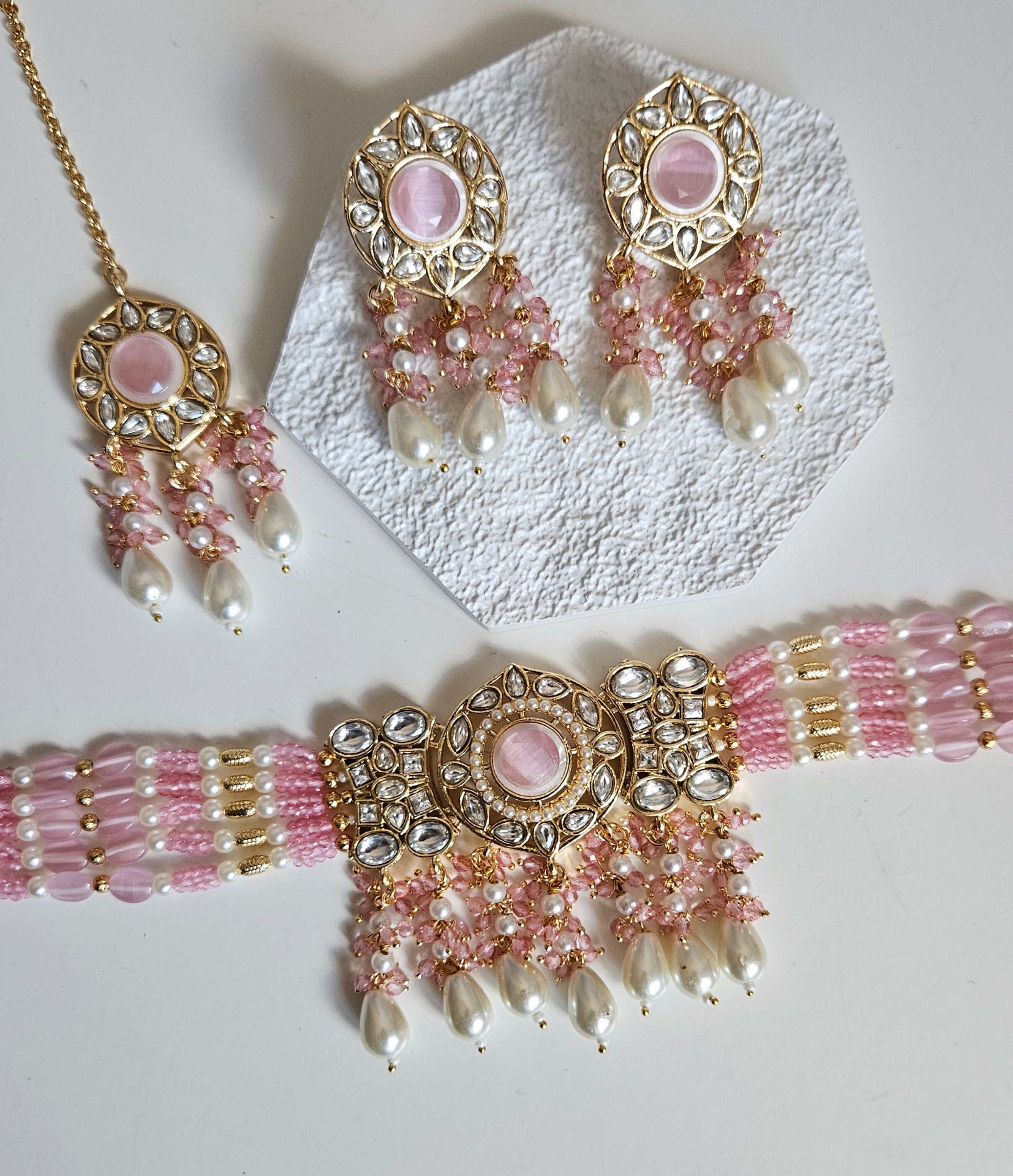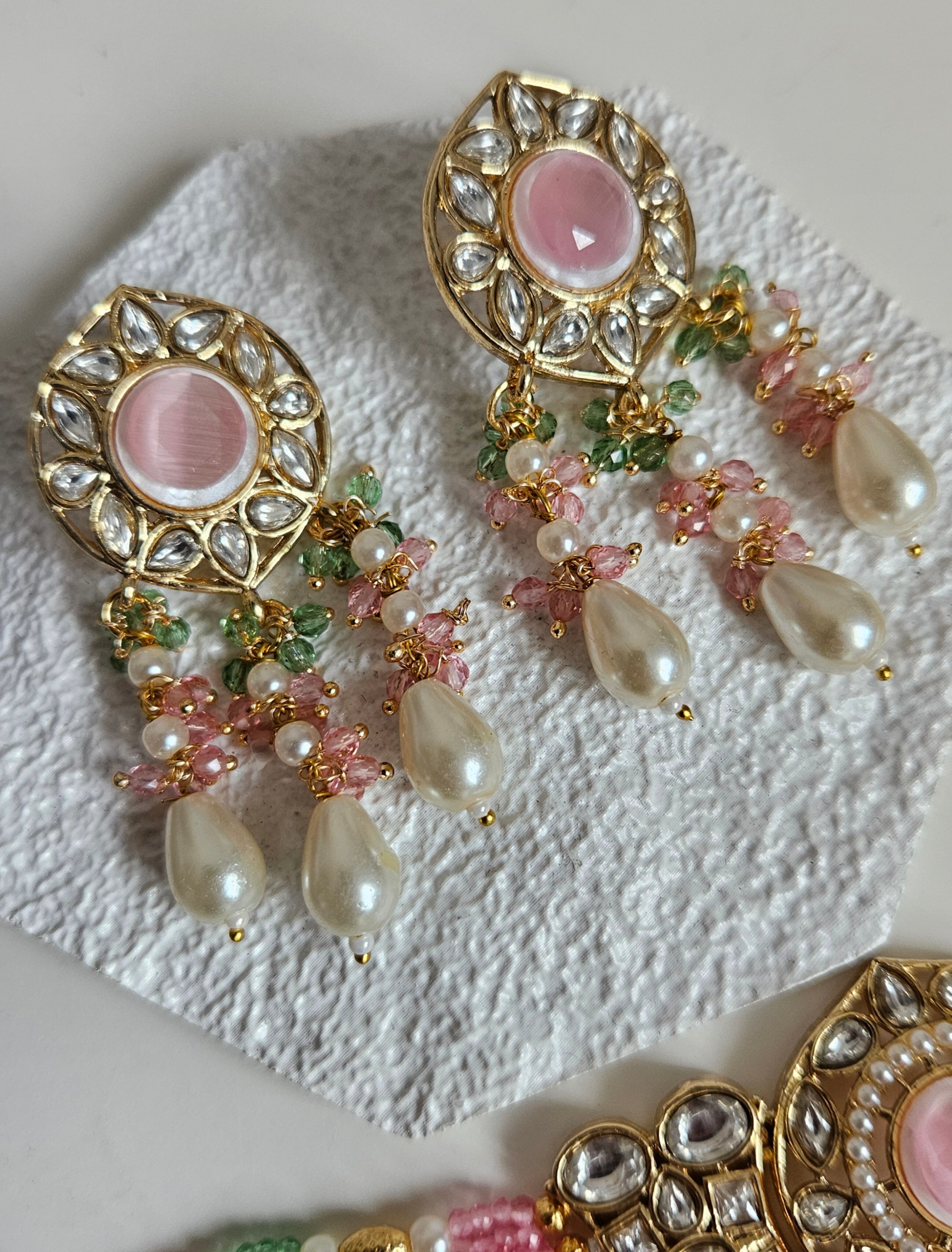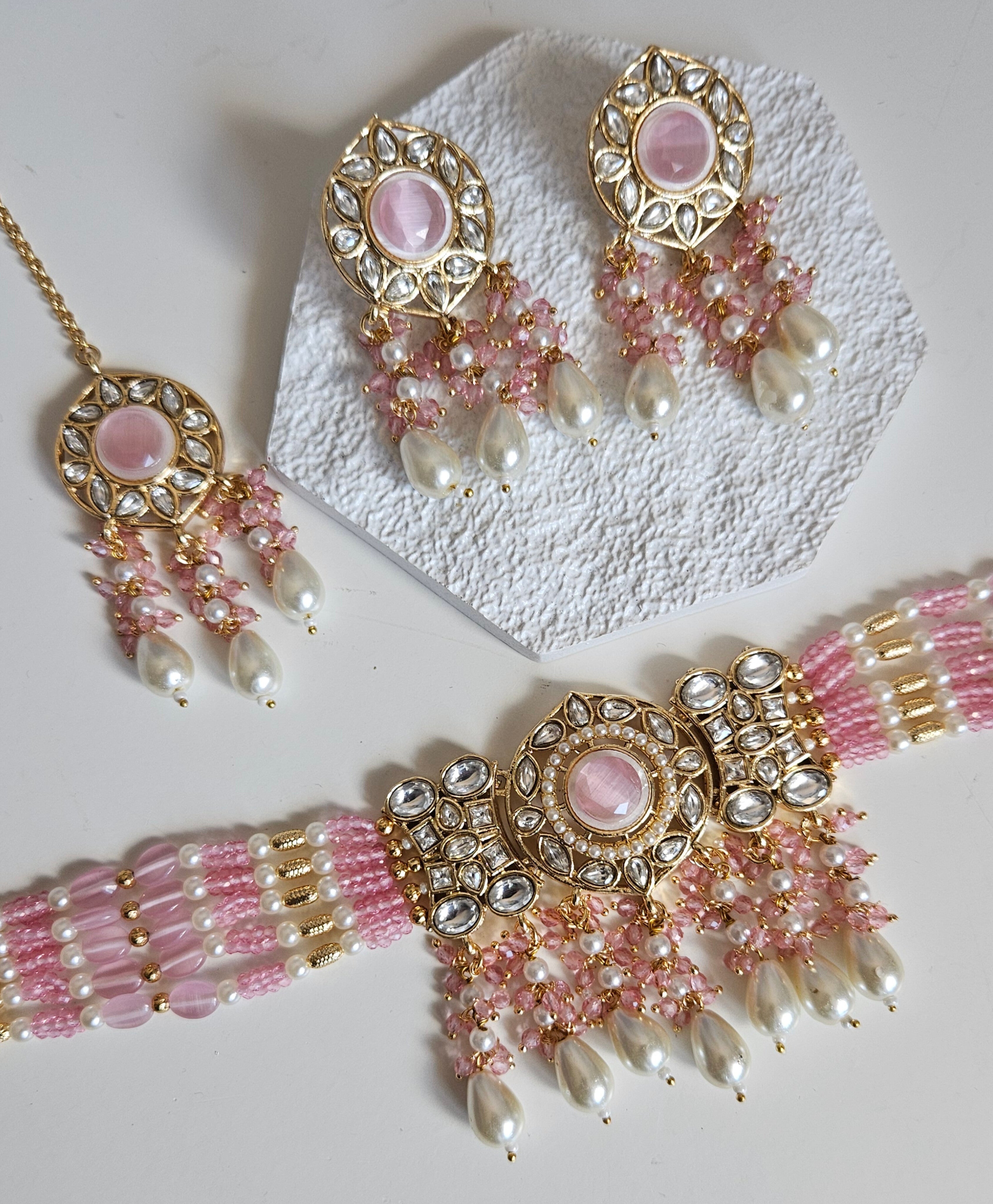 • Gold Tone Choker set Studded With kundan, and Coloured monalisa Stones