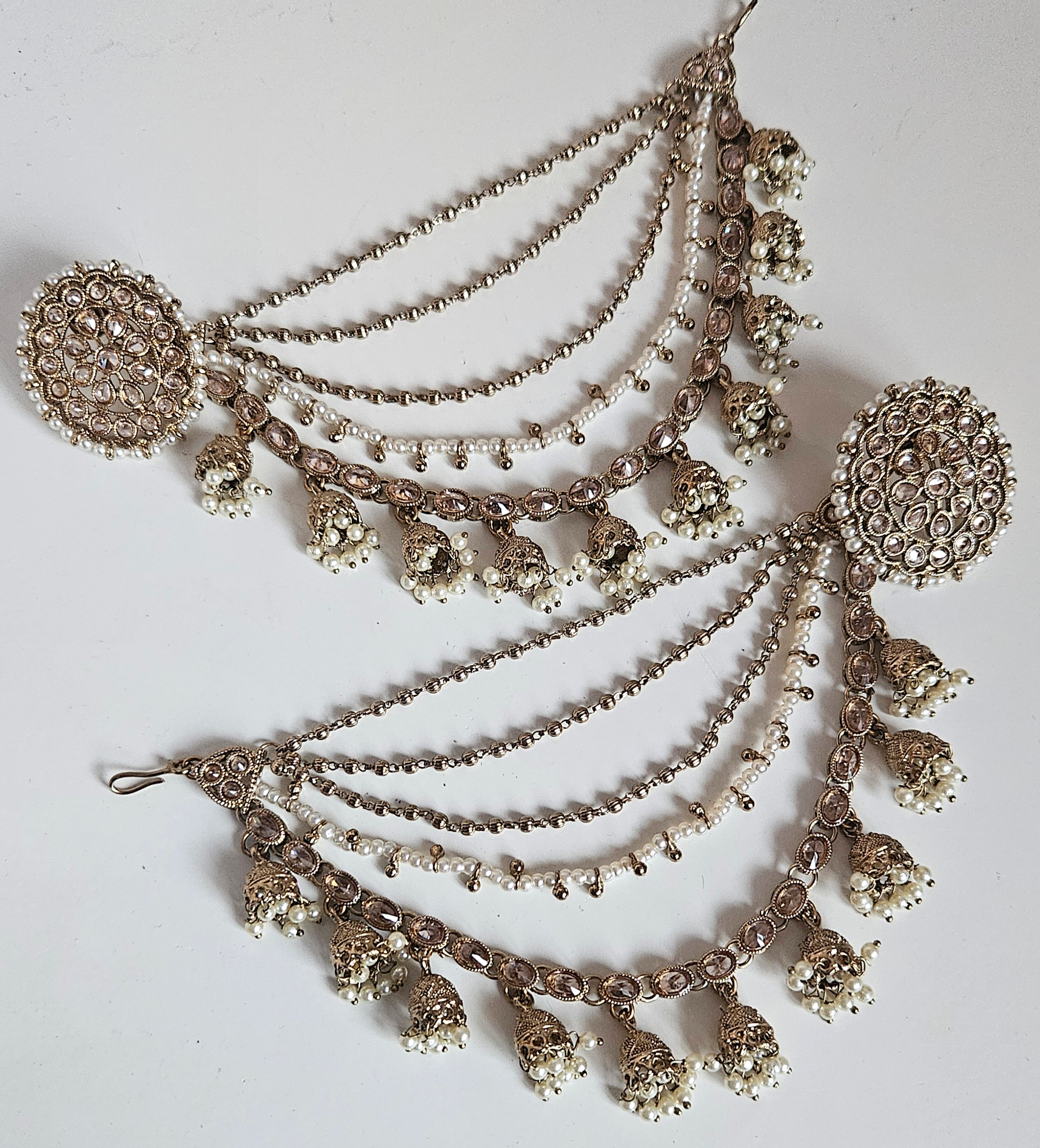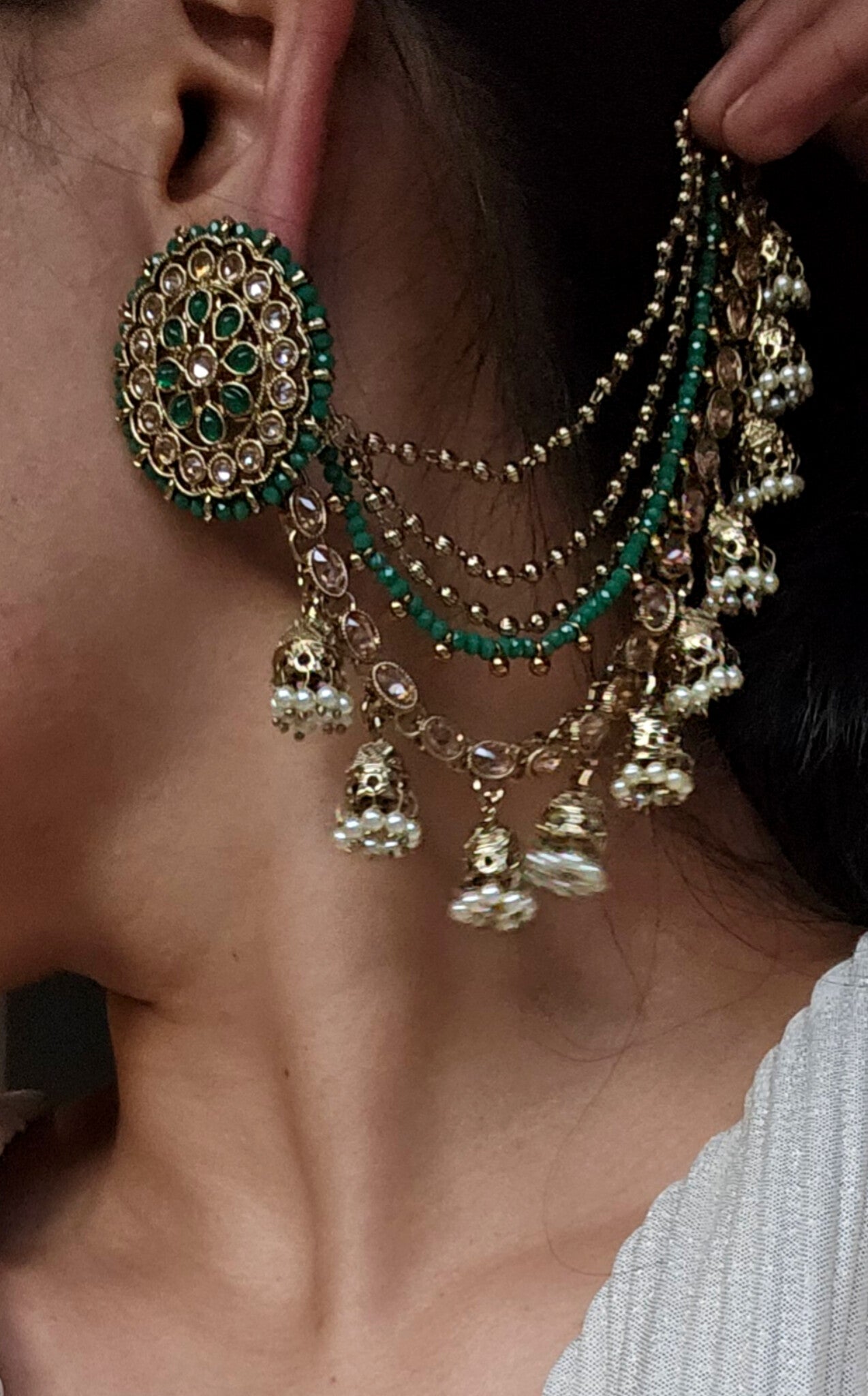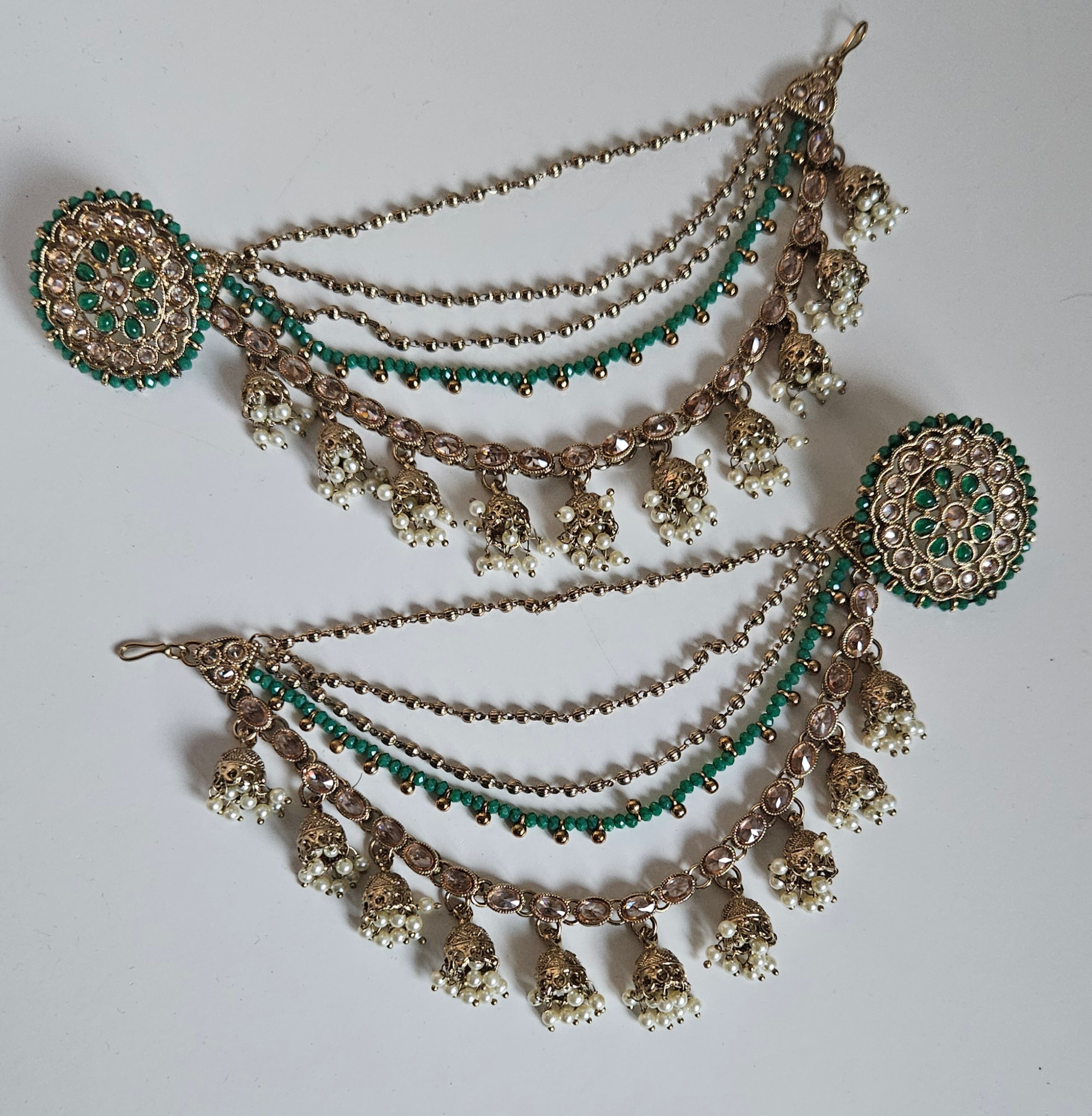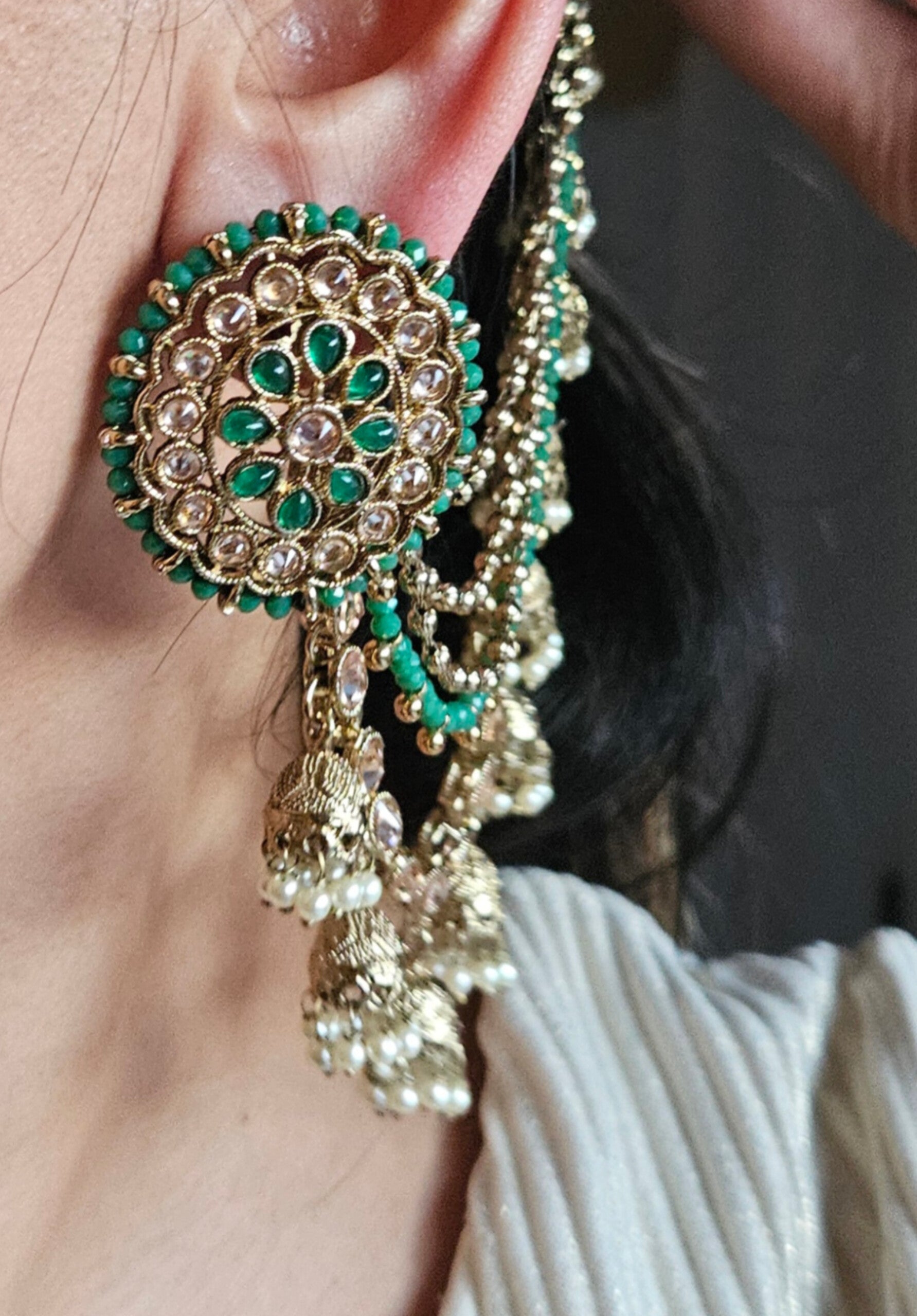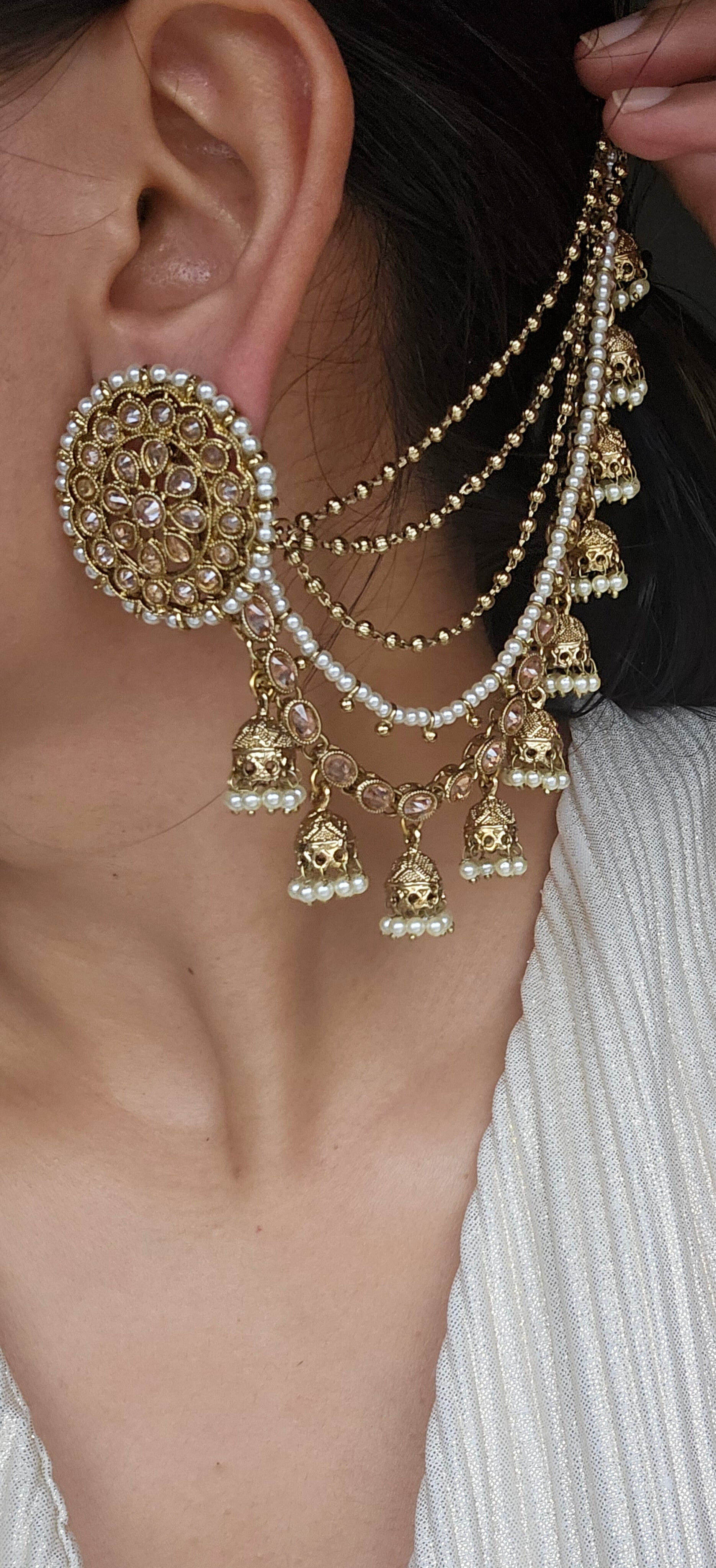 Measures approx : 4cm (L) with long ear chains and post back findings for pierced ears.