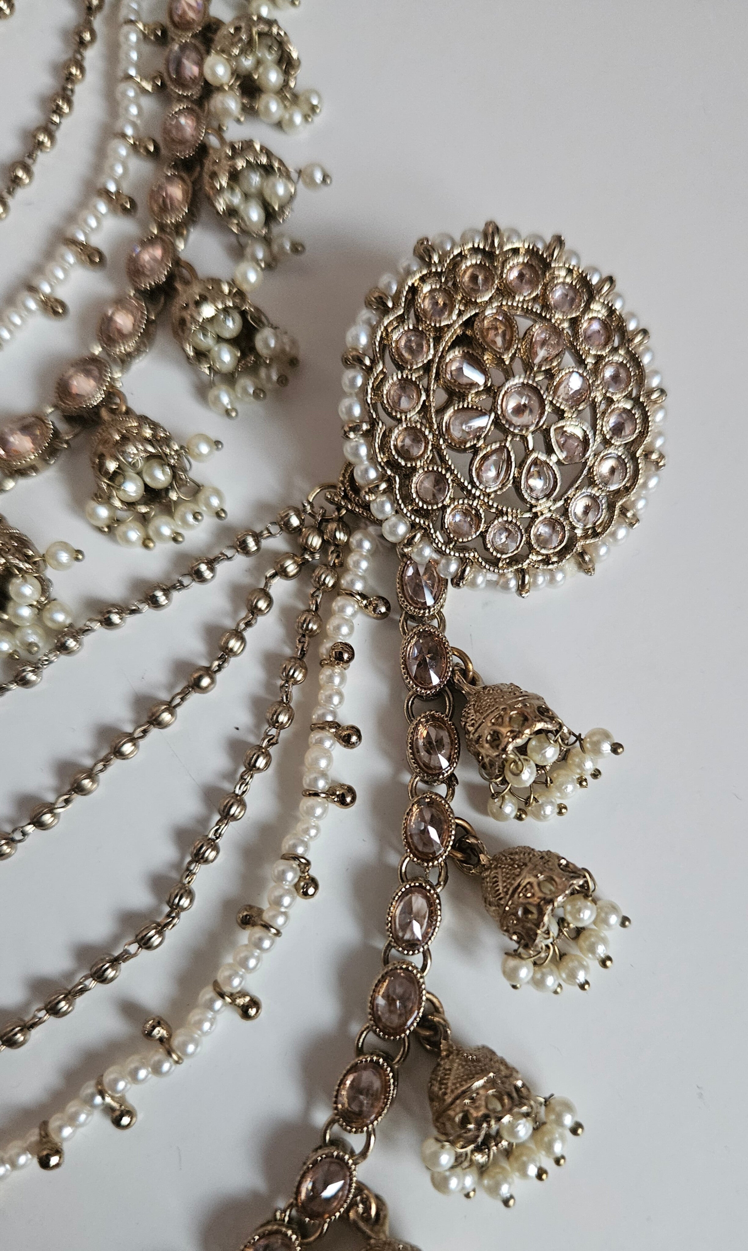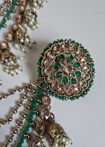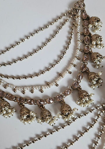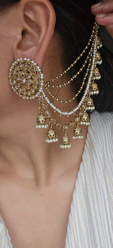 Gold Tone Earrings Studded With Polkis and Faux Pearls.