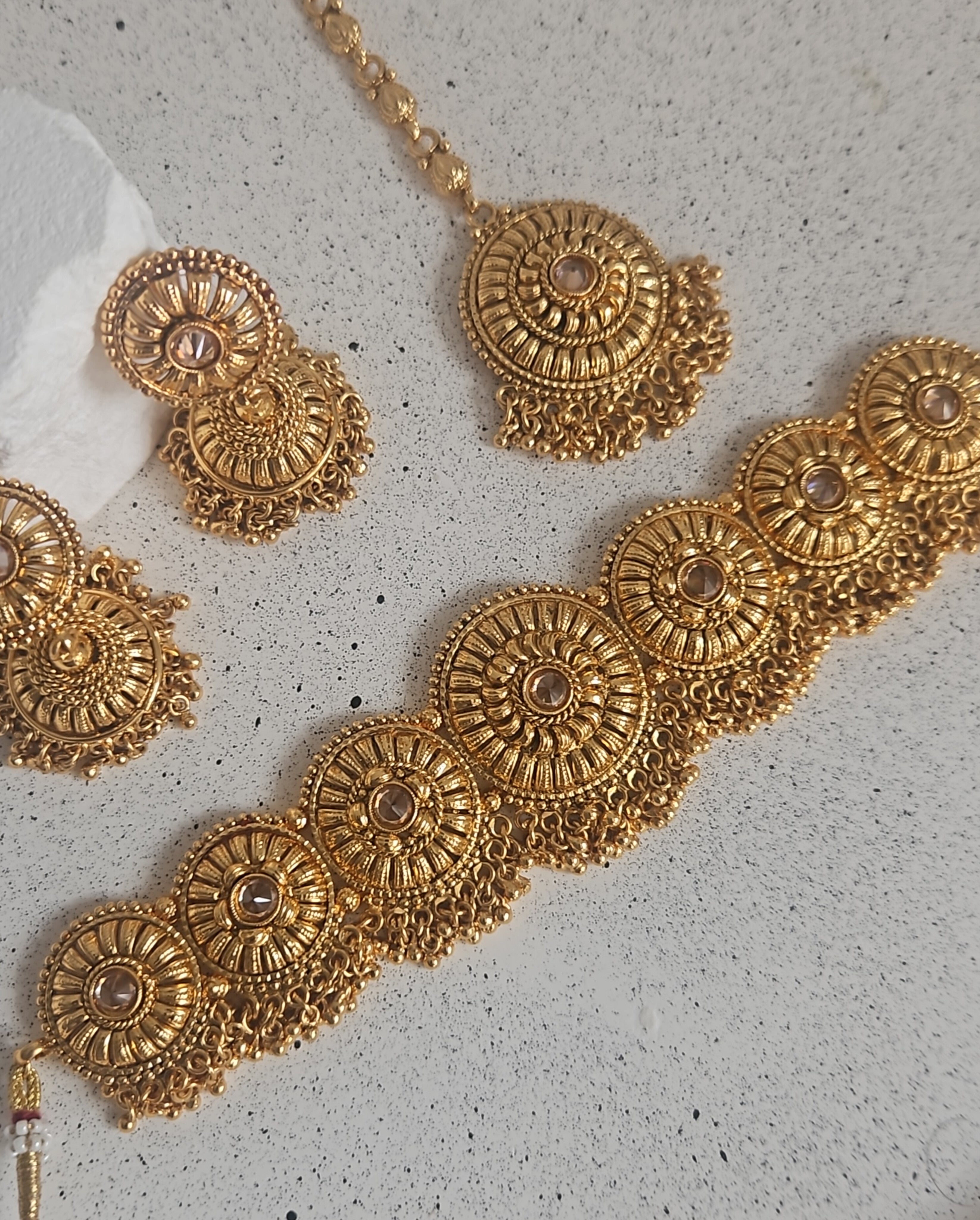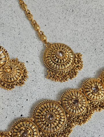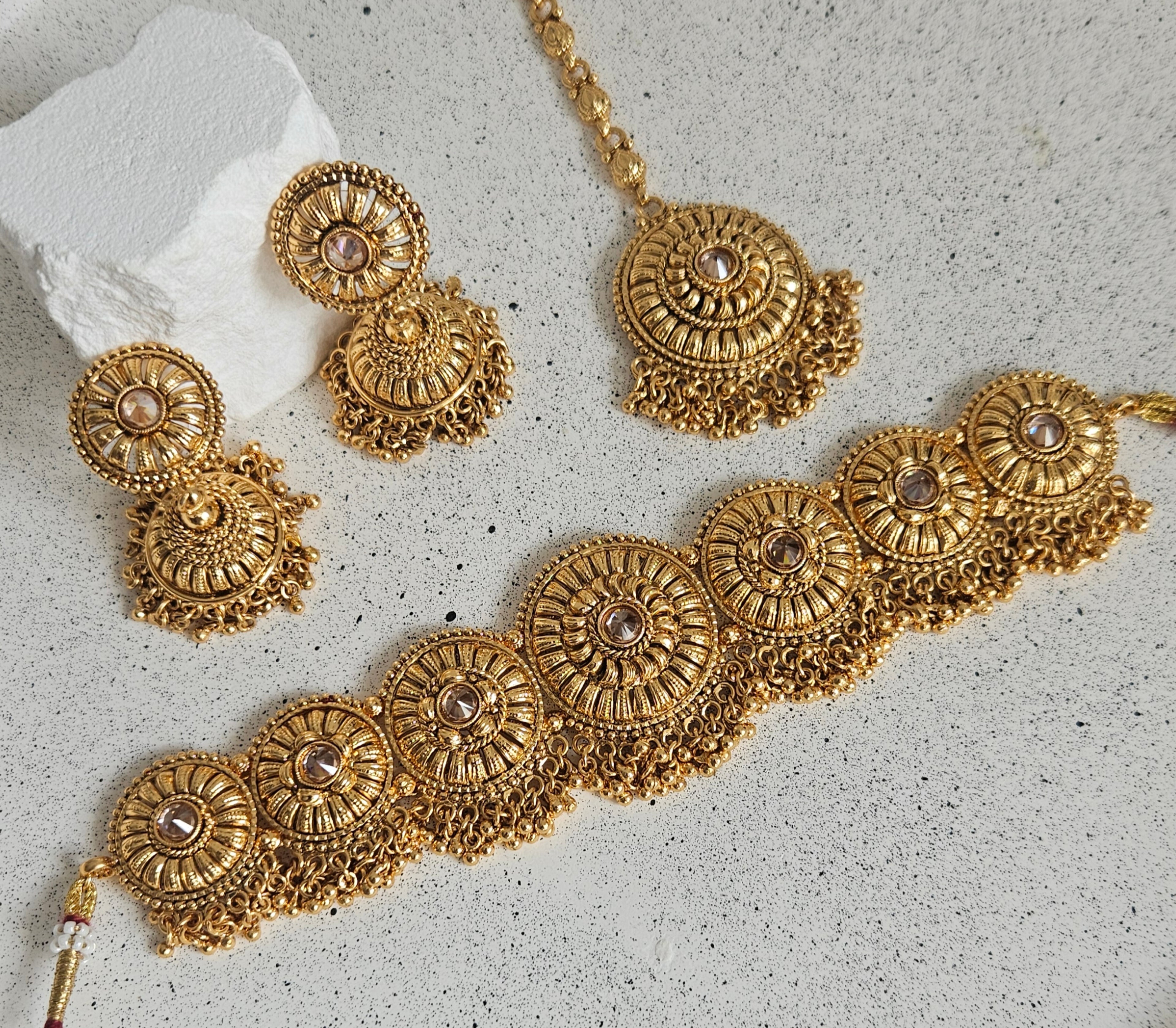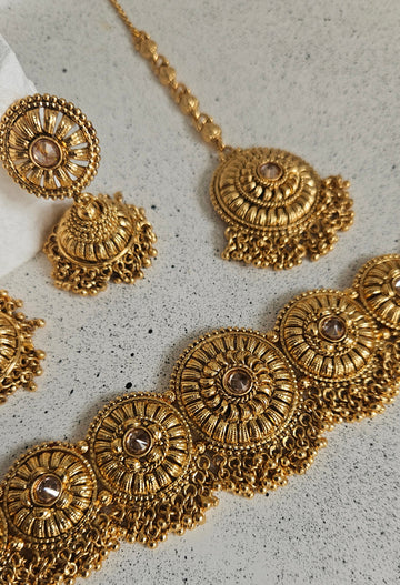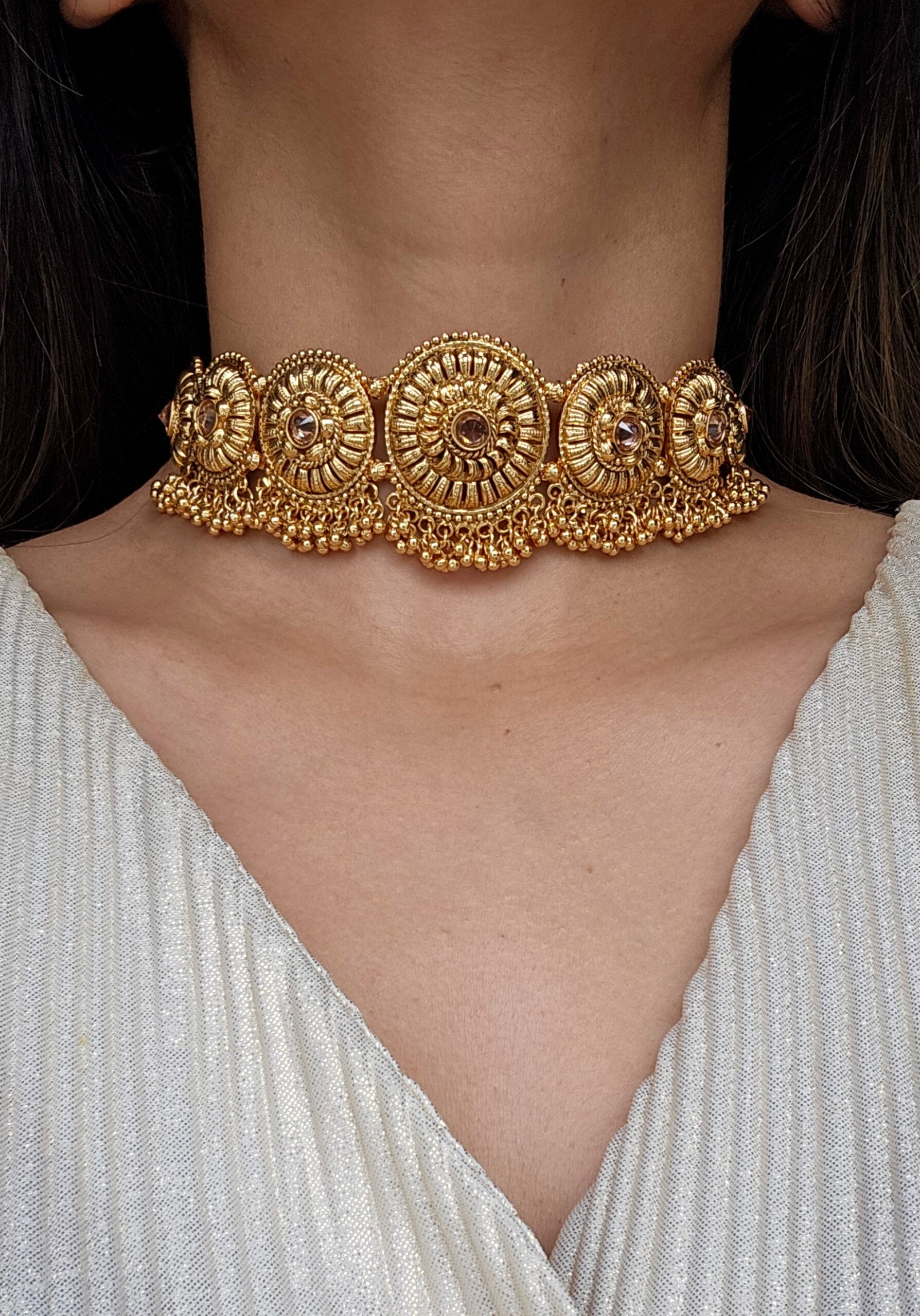 Gold Plated rajwadi polish Choker set Studded With Pearls.