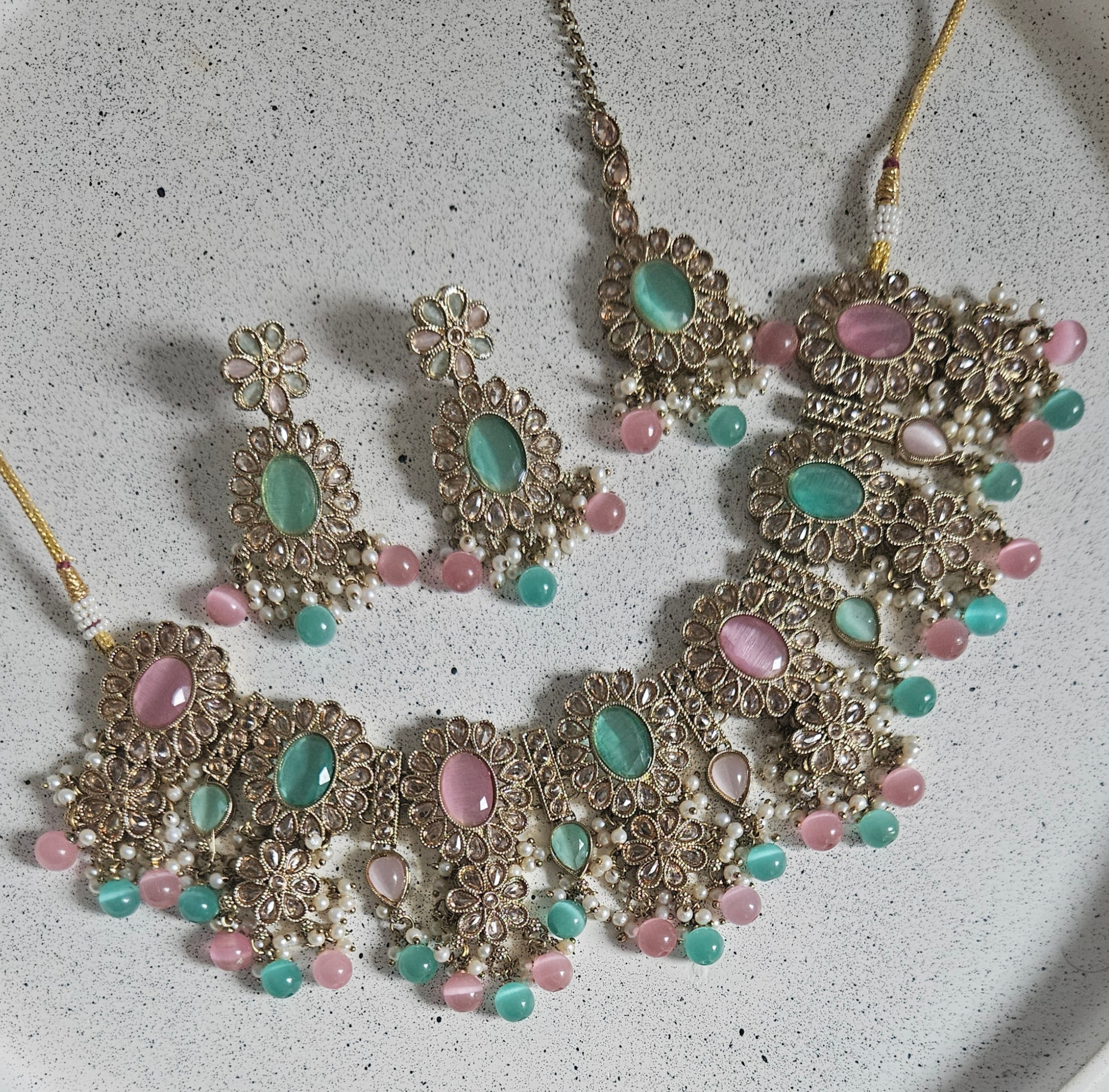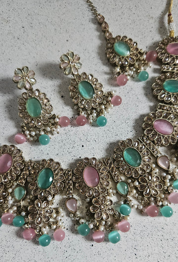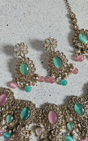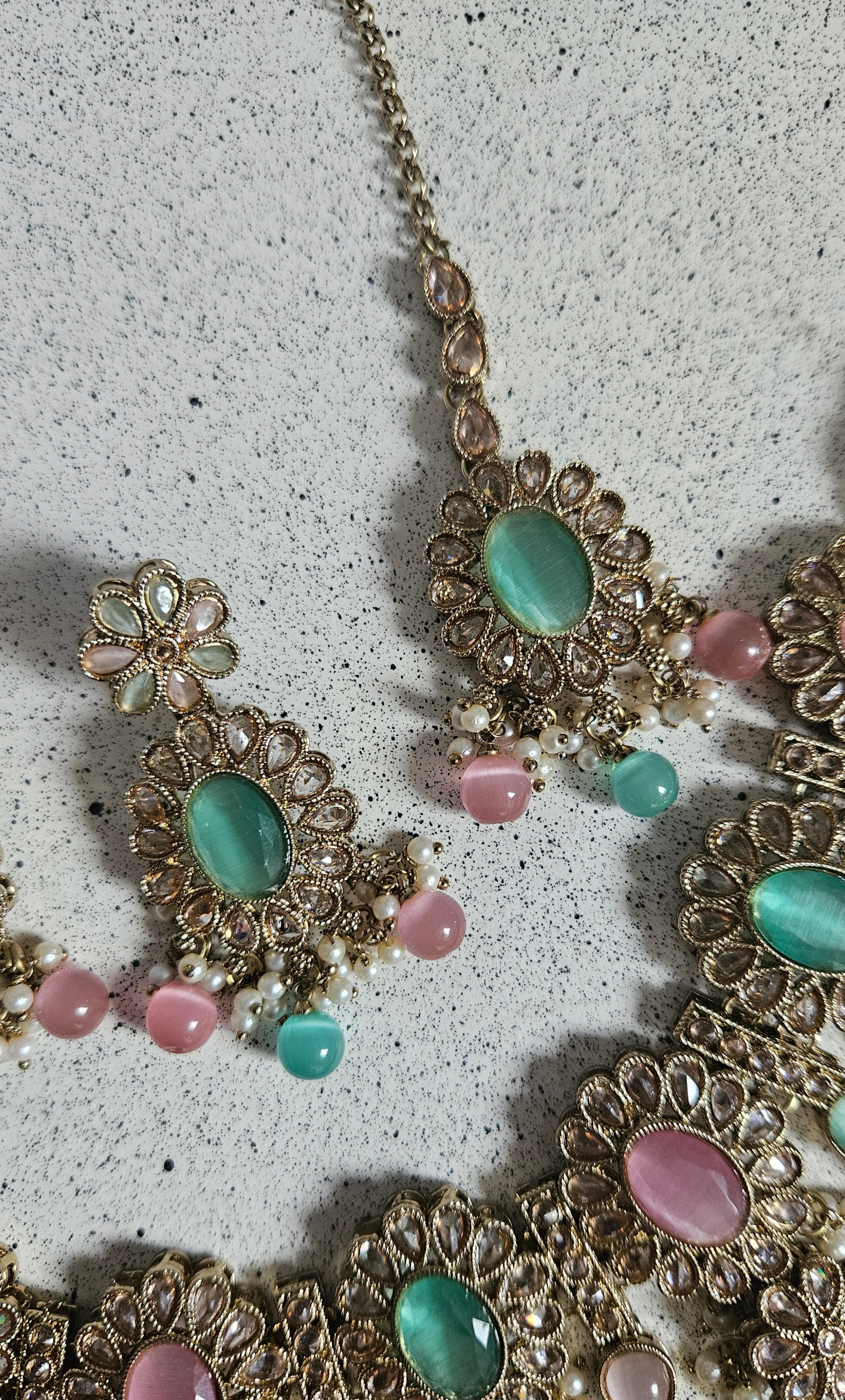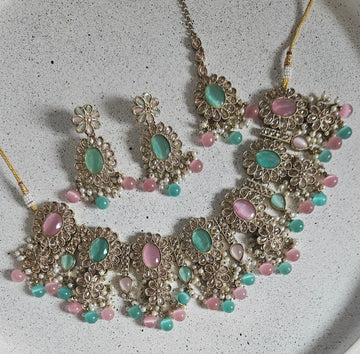 The set also includes a pair of matching earrings, tikka to complete the look.