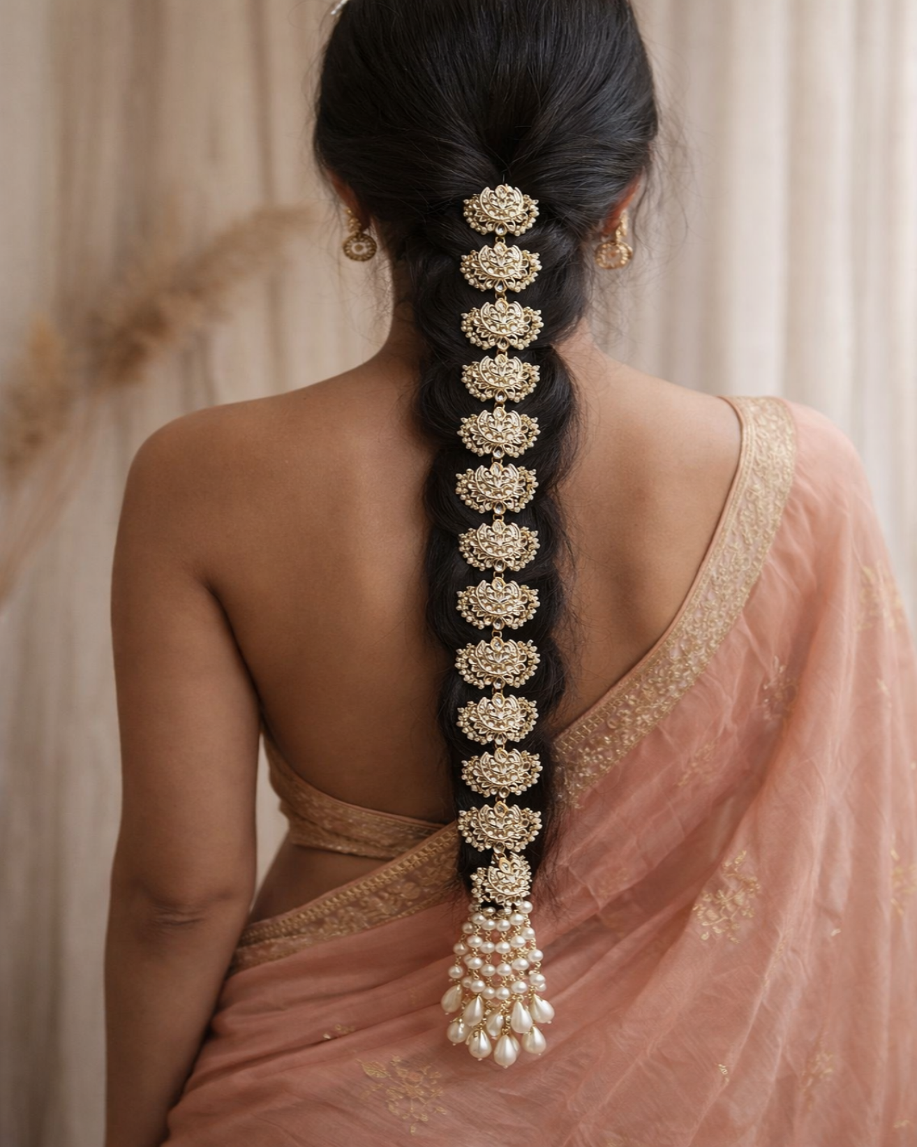 Gold Plated Hair Accessory Studded With kundan and Faux Pearls, Beads.