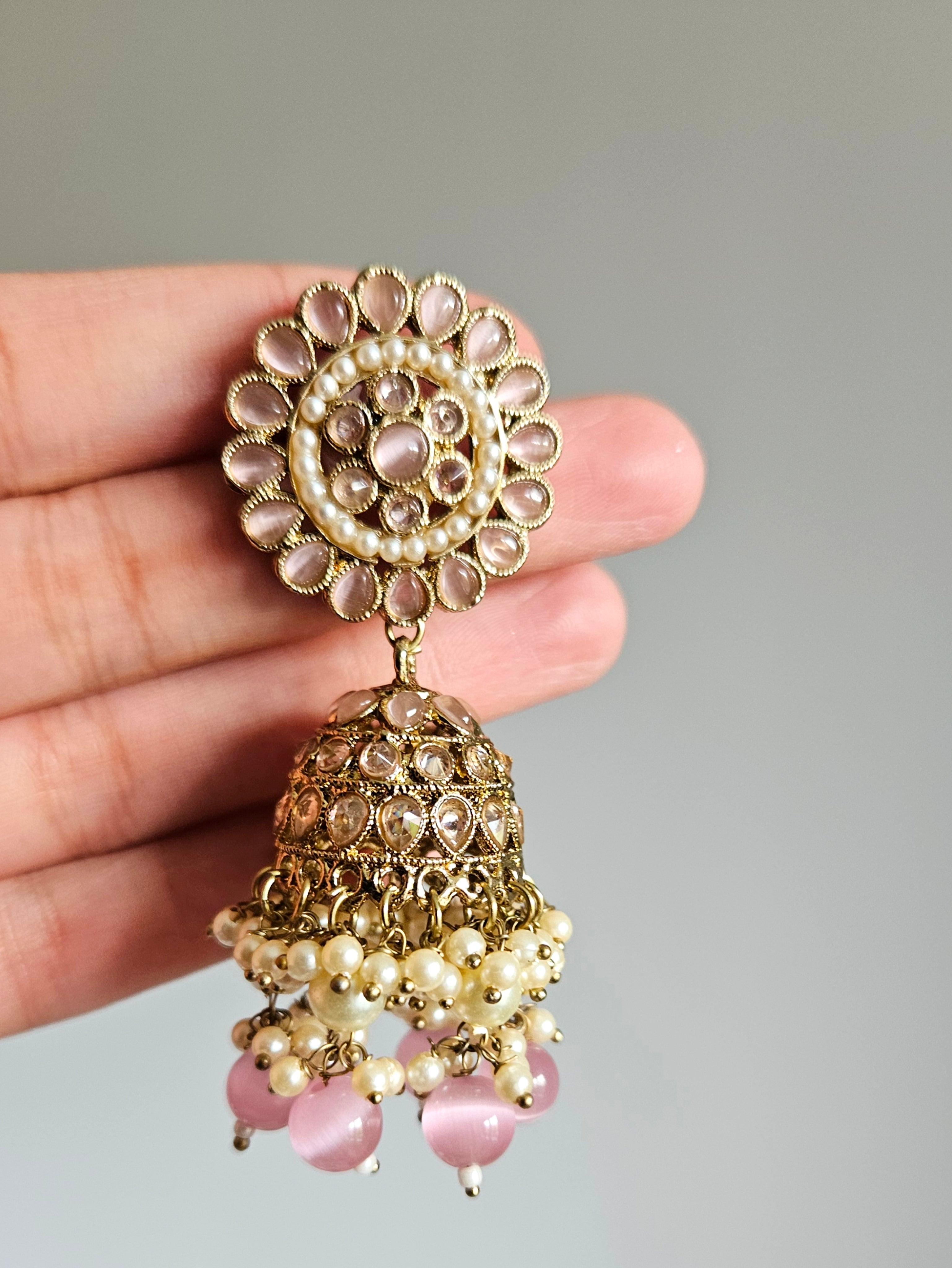 • Gold tone necklace/choker set studded with polkis, faux pearls and beads.