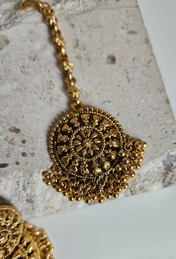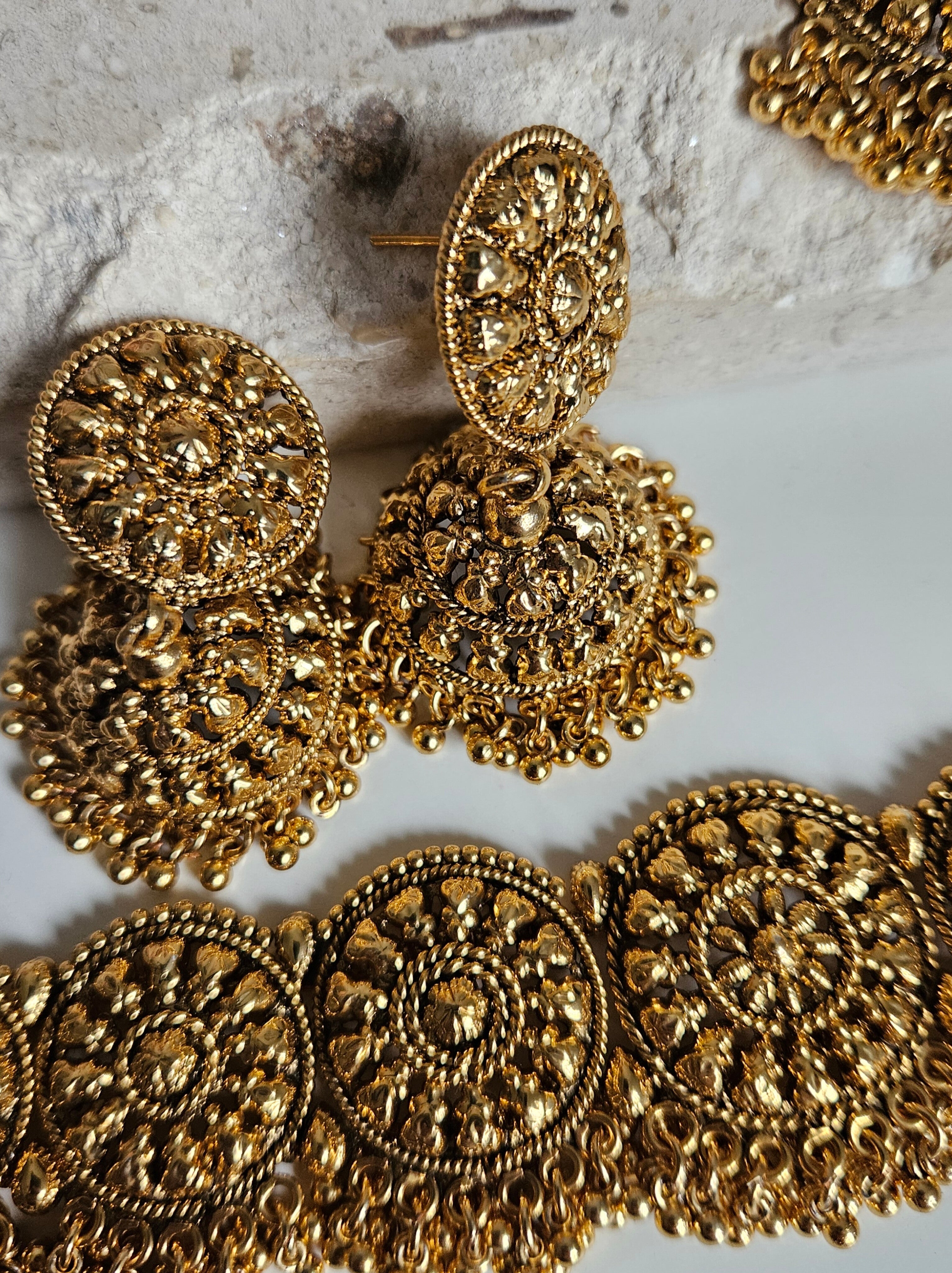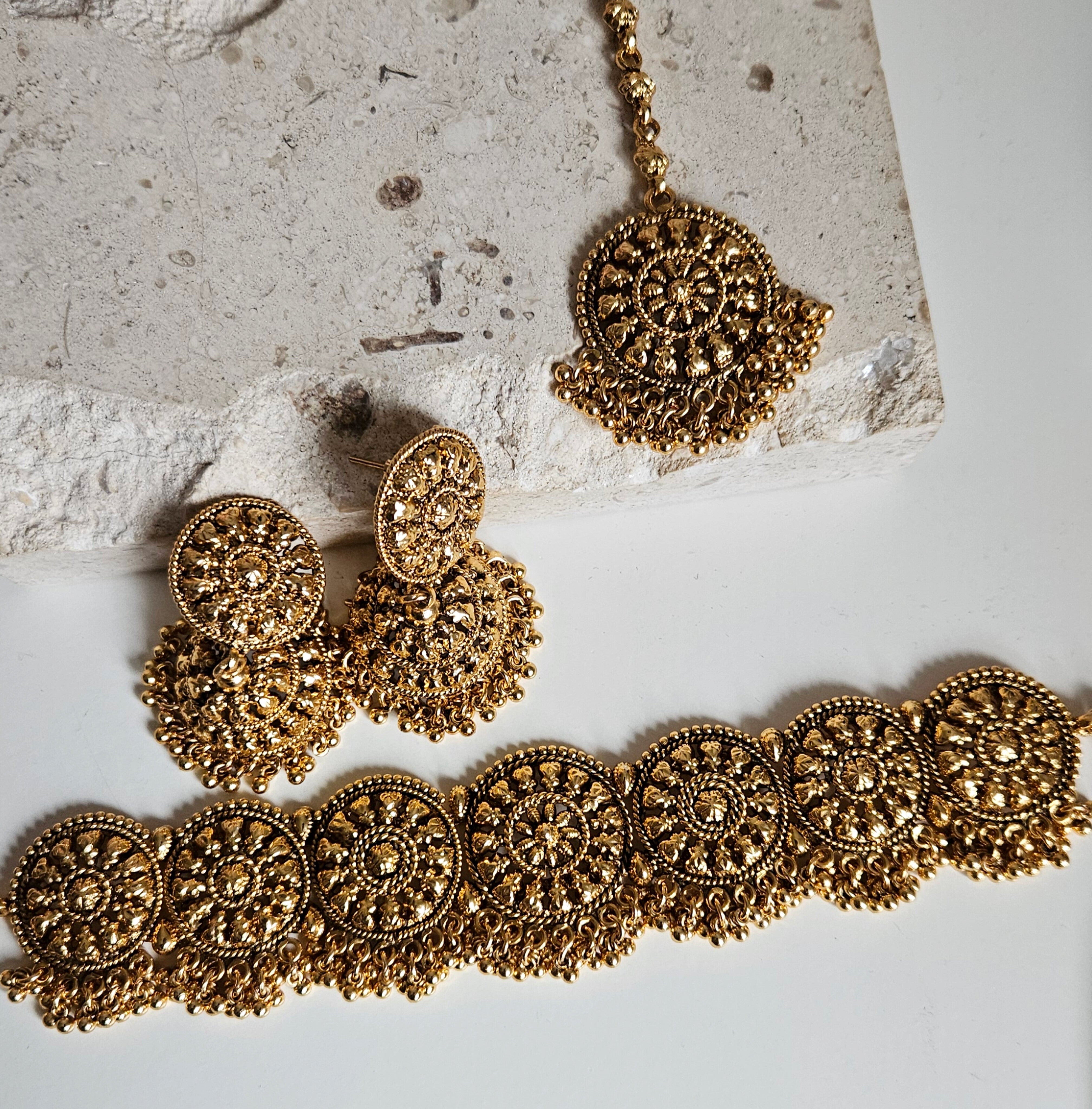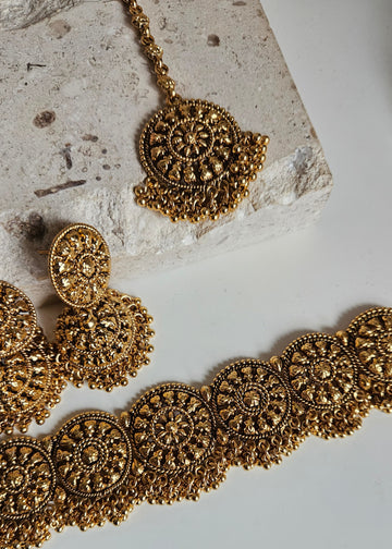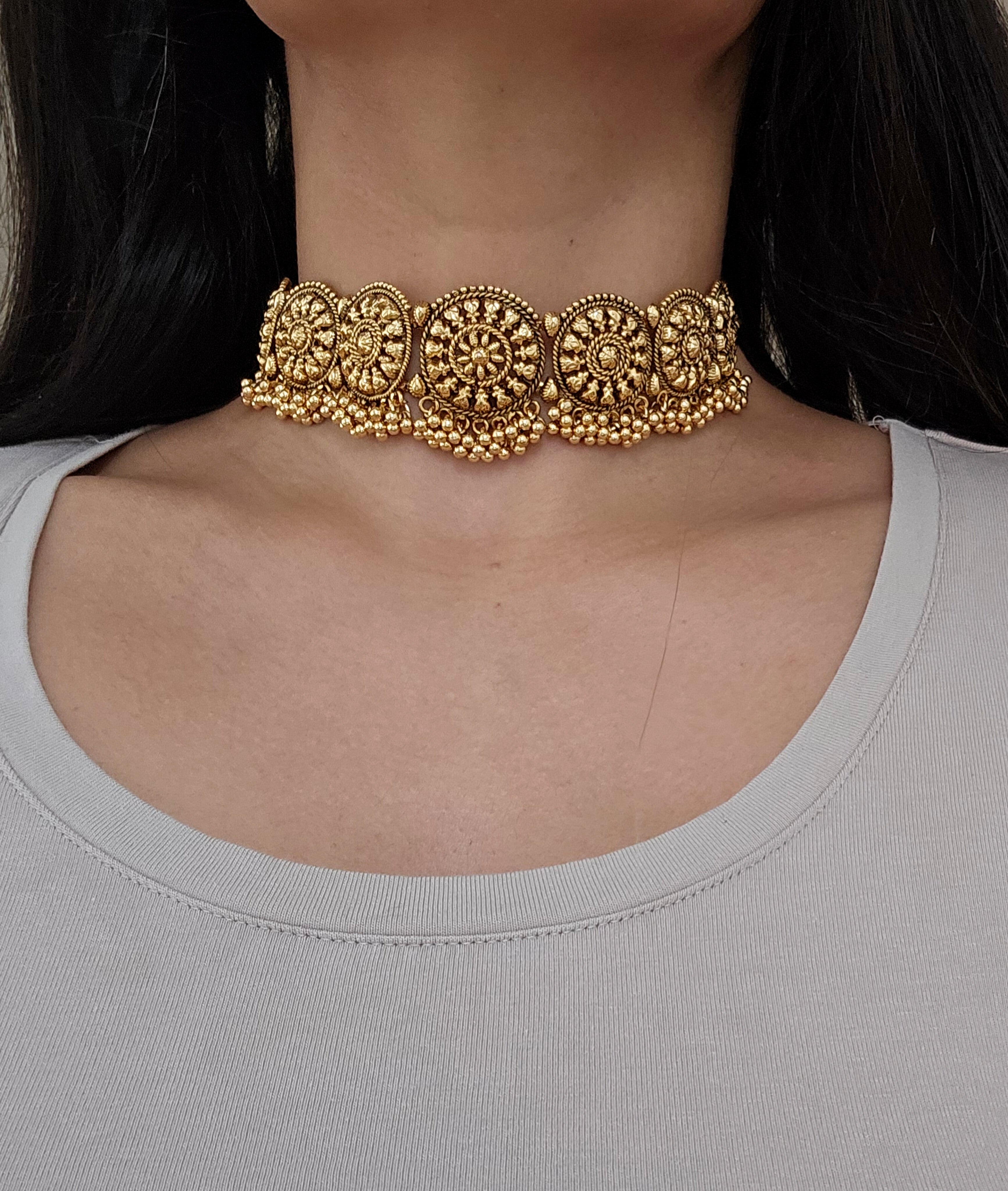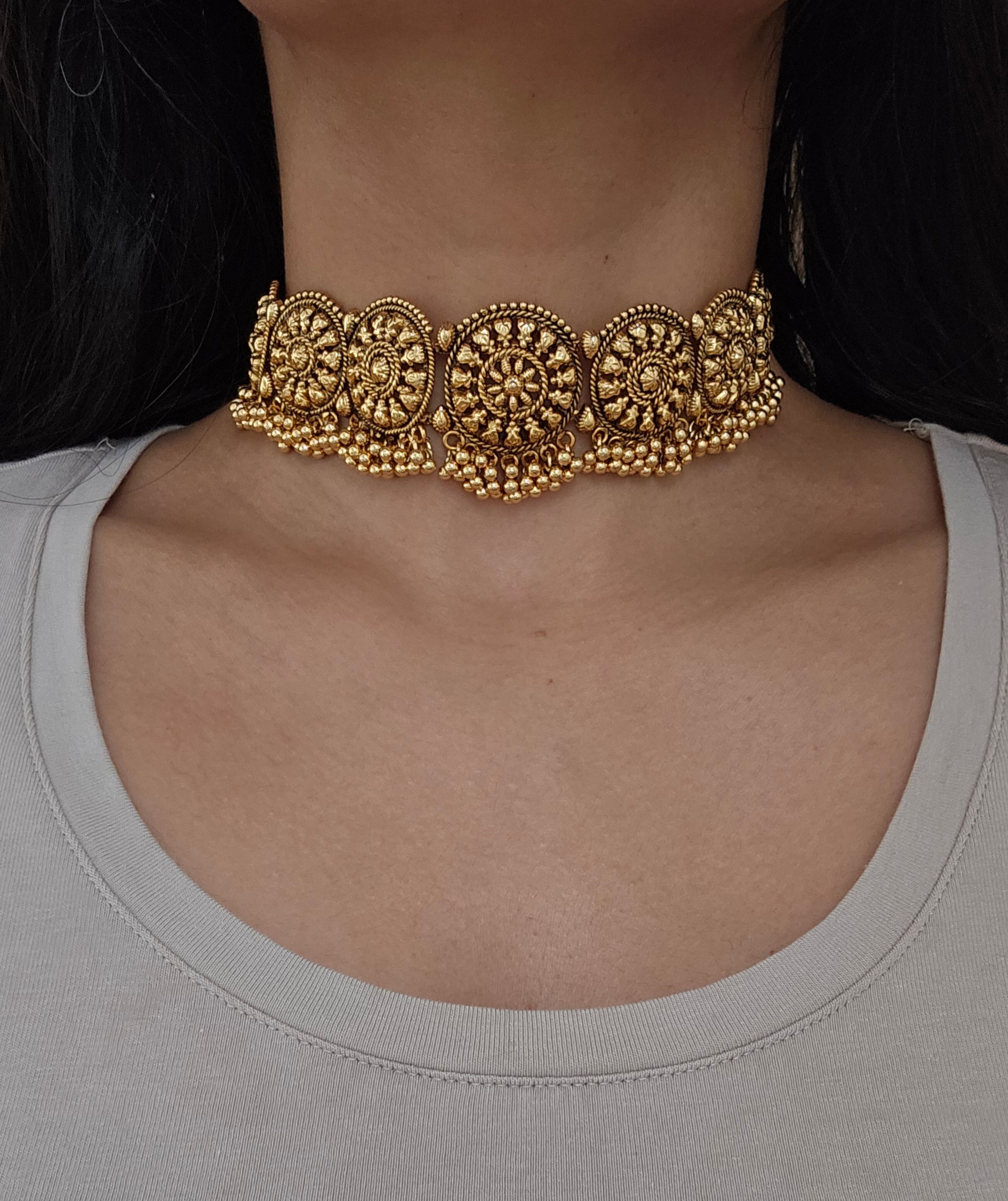 Gold Plated rajwadi polish Choker set Studded With premium quality Pearls.